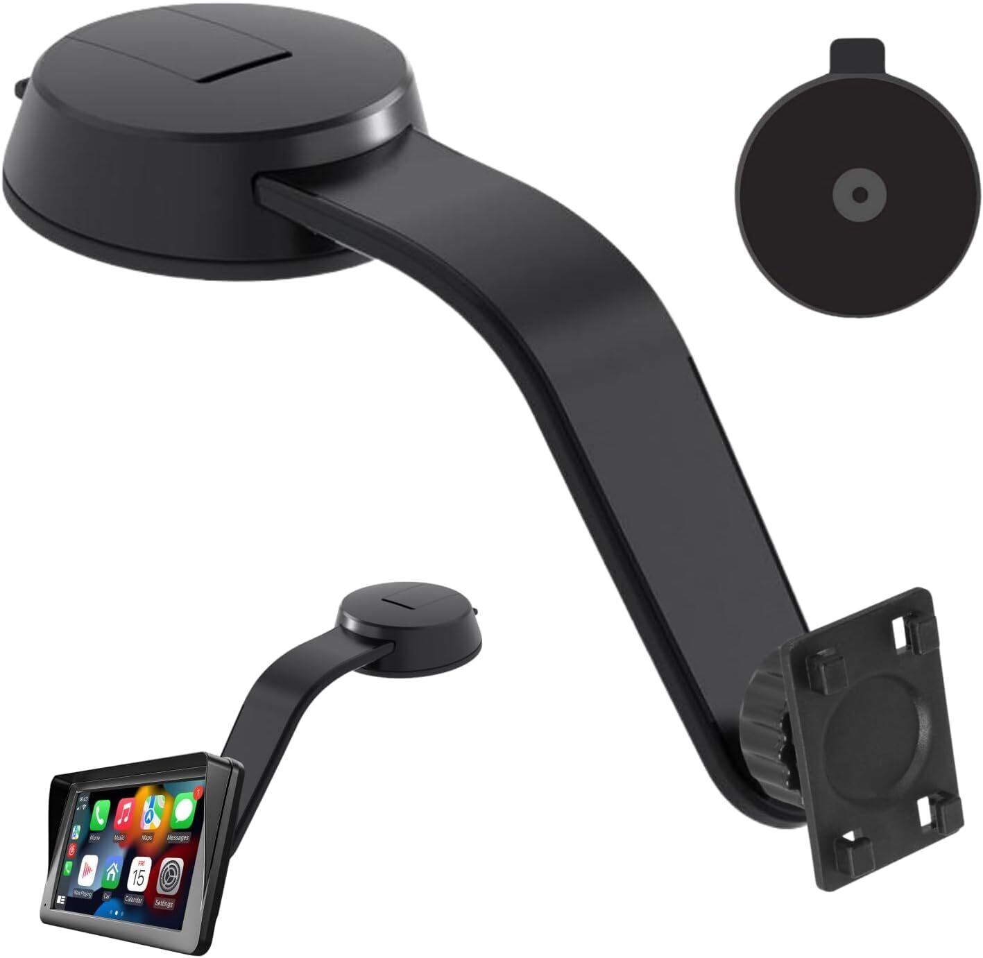 CarPlay スクリーン用吸盤式マウント 、調整可能なアルミニウム合金アーム、低プロファイルダッシュボードマウント78mm 強力粘着ディスク付き車載ディスプレイホルダー