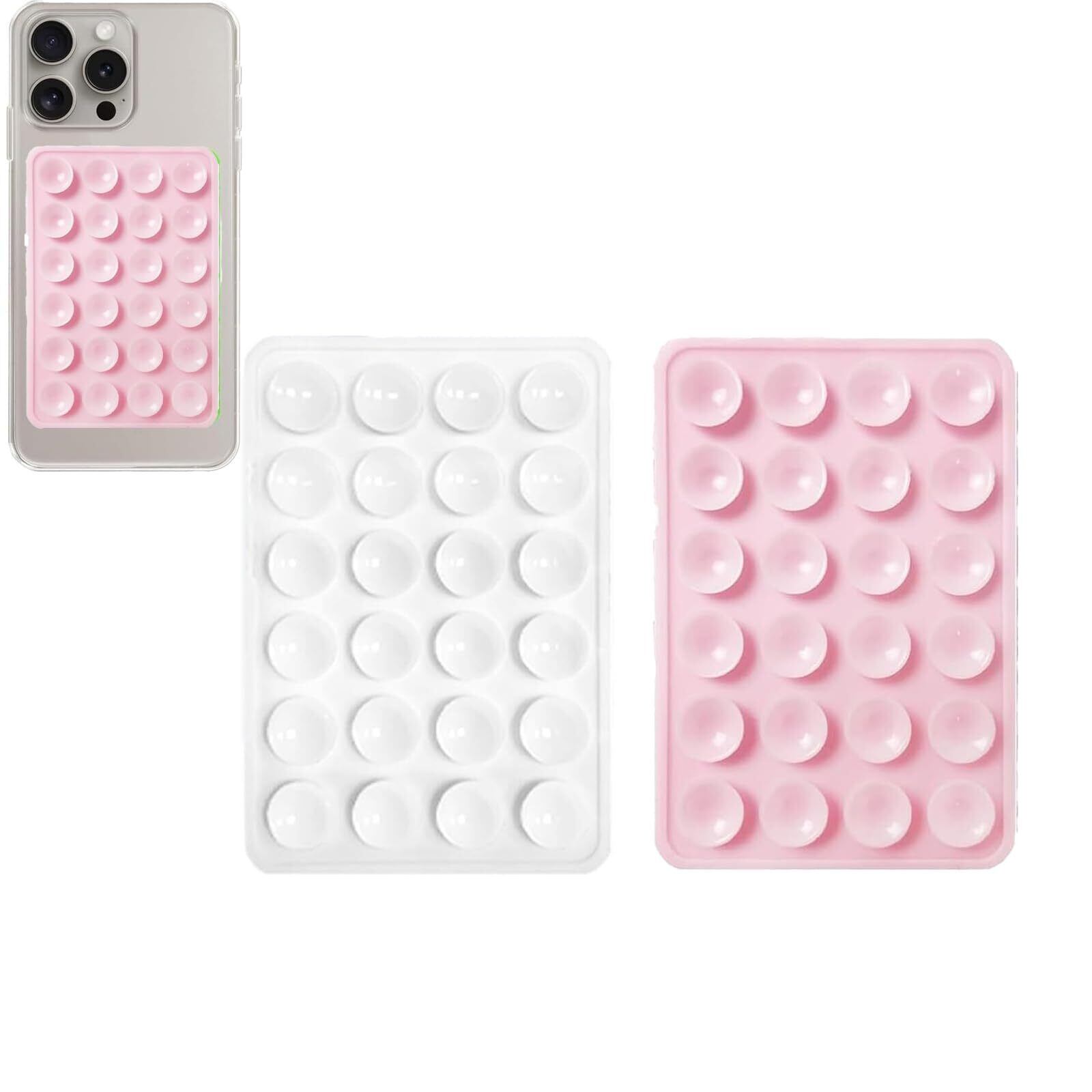 2個吸盤電話ケース マウント、シリコン吸盤電話ケース, シリコン吸引電話マウント, 滑り止め粘着式磁気電話ホルダー自撮り用携帯電話アクセサリー (ホワイトライトピンク)