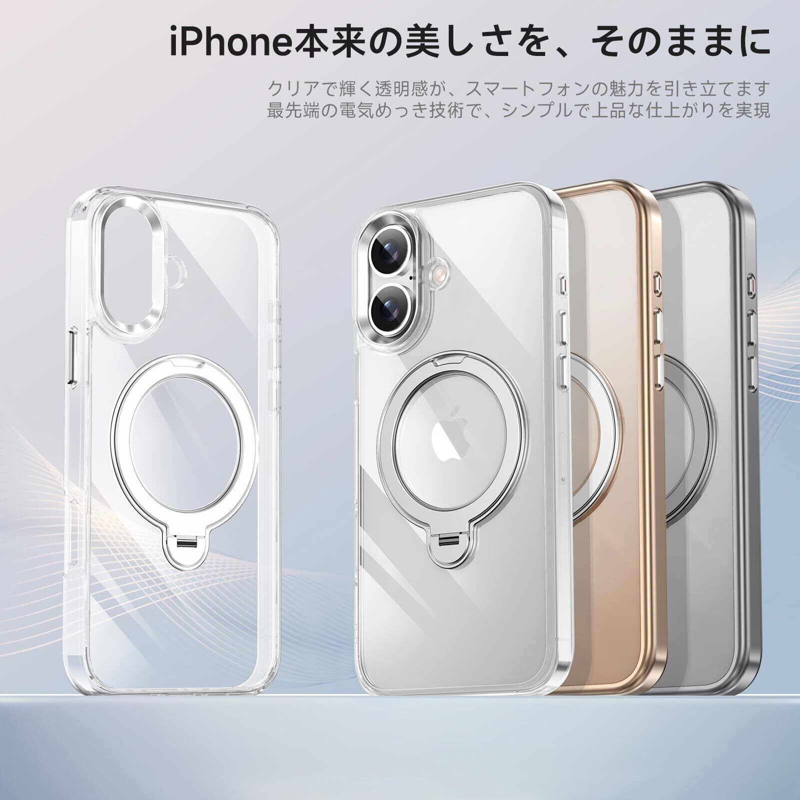KMAMBNG iPhone 16 用 ケース Magsafe対応縦横両立 角度自在 調整可能 磁吸機能でワイヤレス充電対応 おしゃれ スマホケース (クリア, iPhone 16)