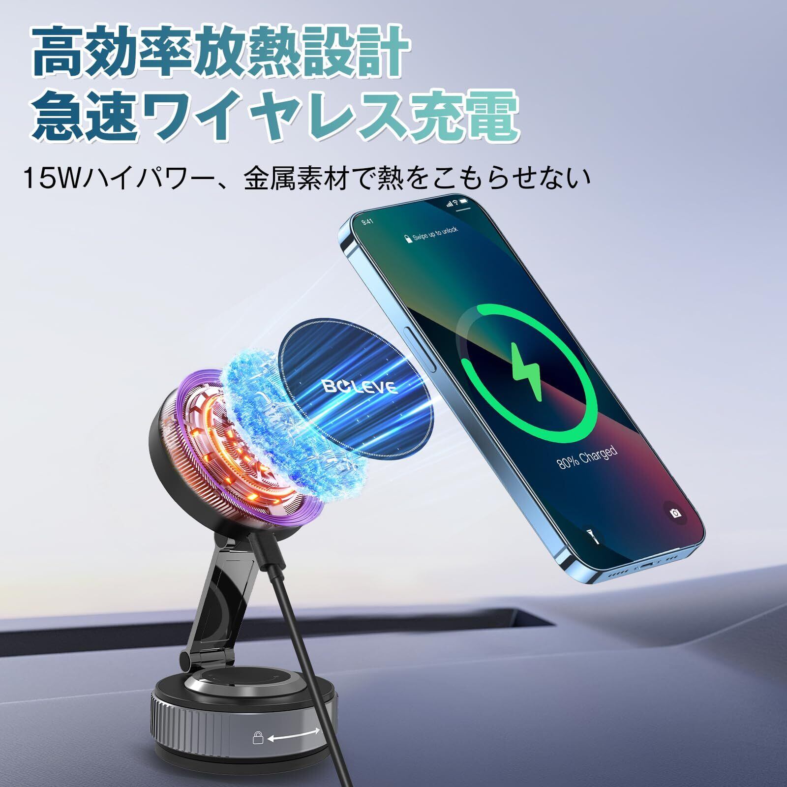 Boleveスマホホルダー 車 ワイヤレス充電 マグネットMagSafe 車載ホルダー 超強N55磁石 折りたたみ式 カー用品 片手操作iPhone 17/iPhone 17 Pro/iPhone 16/Sony/Galaxy/HUAWEI/Google/その他Qi機種