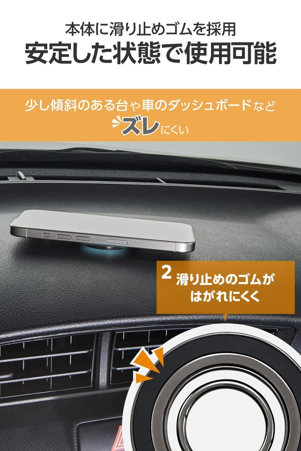 本体には滑り止めゴムを採用。少し傾斜のある台や車のダッシュボードなどに置いたときでも、安定した状態を保つことができます。