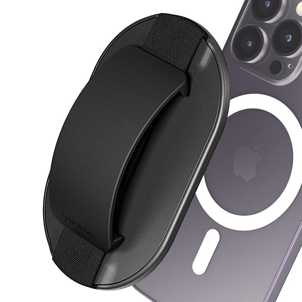 Sinjimoru、Magsafe対応 9mm 薄型 シリコンフィンガーグリップ 簡単脱着 落下防止 ワイヤレス充電可能 スマートフォンバンドスタンド 2in1機能 iPhone 16 Plus Pro Pro Max 15 14 13 12 シリーズマグセーフ用磁気スマホシリコングリップ。M-SGrip ブラック