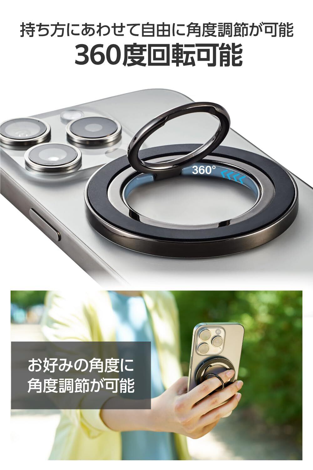 エレコム MagSafe対応 360度回転 スマホリング マグネット式 スマホスタンド 滑り止め付き 耐荷重:800g ブラック PWSTRMKM360BK