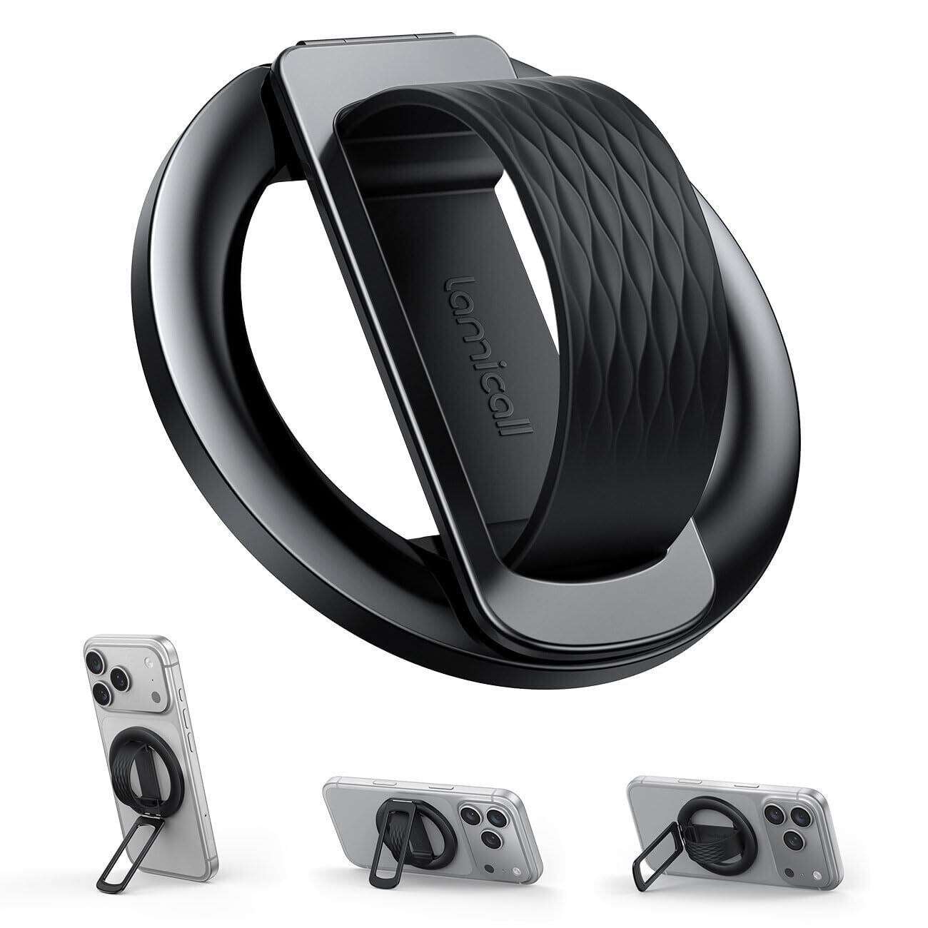Lamicall MagSafe対応 スマホリング : マグセーフ リング シリコン製 マグネット式 リングホルダー magsafe リング iphone 磁石 リング 携帯 バンカーリング スマホグリップ 横置き スタンド 磁気増強 金属リング付き 取り外し iPhone 17 17 pro 17 pro max Air 16 ミニ アンドロイドに対応 ブラック