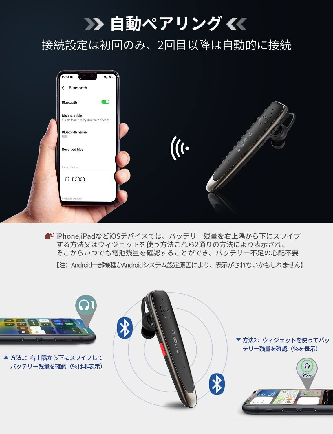 【デュアルマイク高音質通話設計】ご注意:本商品使用上のアドバイスとしては、完全防水ではないため、土砂降りの雨天でのご使用や長時間水に浸かることはお避け下さい。また、服やズボンを洗濯機に入れる際には、必ず本商品を取り出して下さい。前後にデュアルマイク(フィードバックキャンセリング機能)搭載により、周囲の雑音を自動的にキャンセリングし、通話している人の方向を精確に計算し、より鮮明な通話音声を実現します。