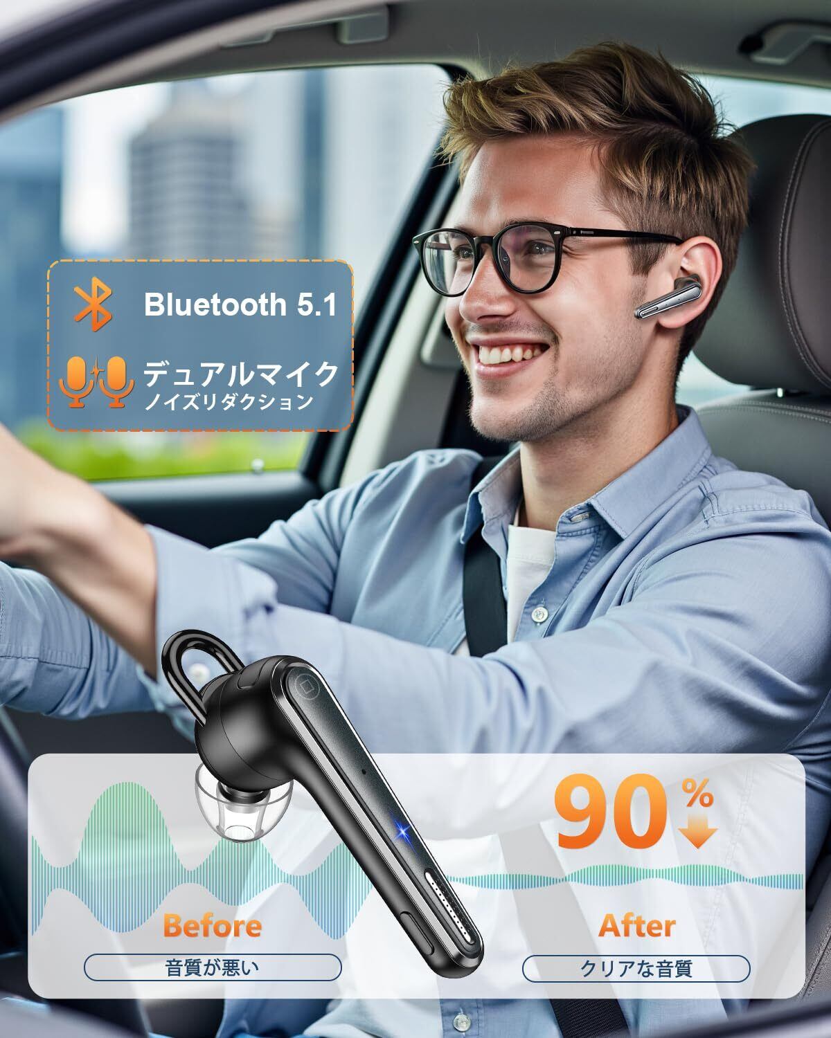 【CVC8.0・ノイズ抑制】片耳 Bluetooth ヘッドセットはノイズキャンセリング機能付き、周りのノイズを低減し、遅延、音飛び、音切れを大幅に改善し、クリアな音楽・通話をサポートします。