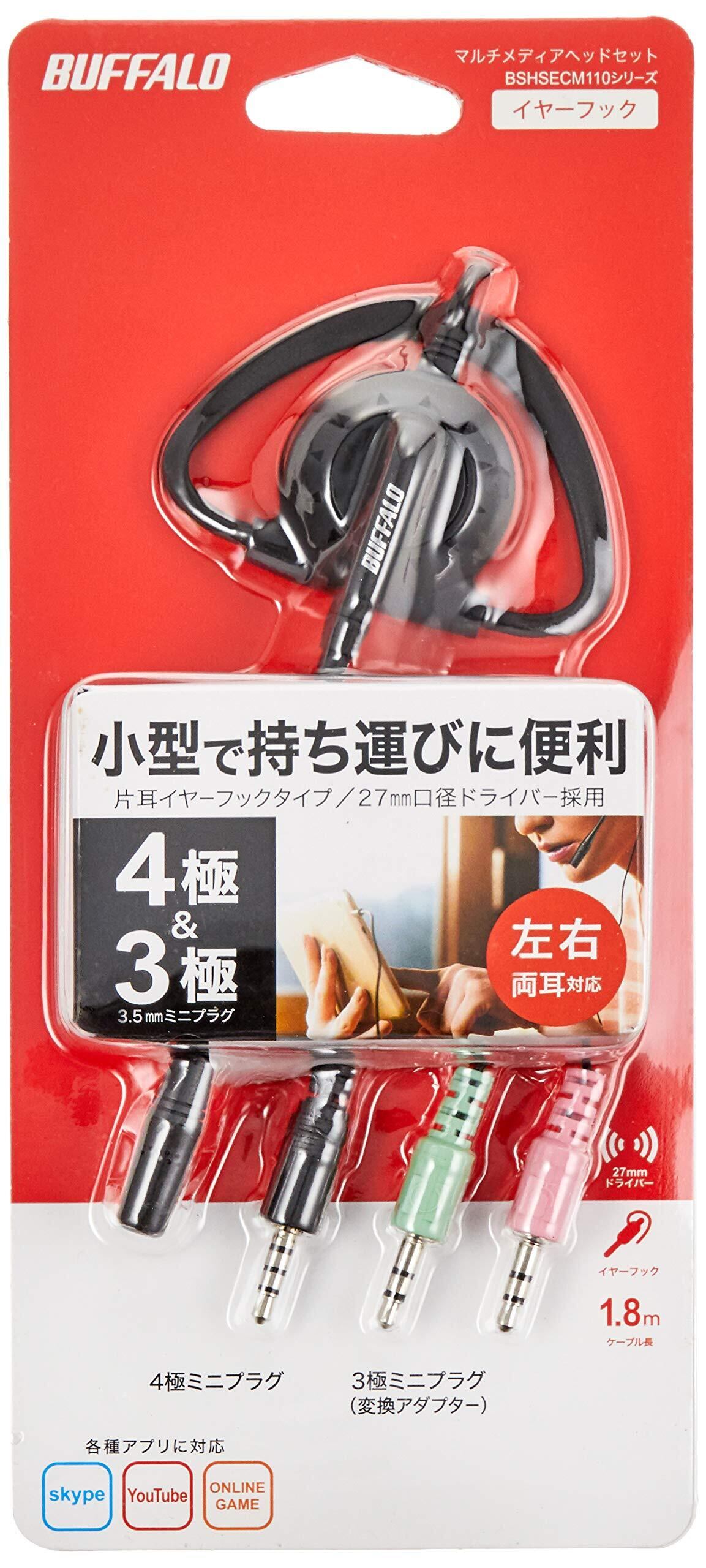 バッファロー BUFFALO 片耳イヤフック式ヘッドセット 4極&3極プラグ