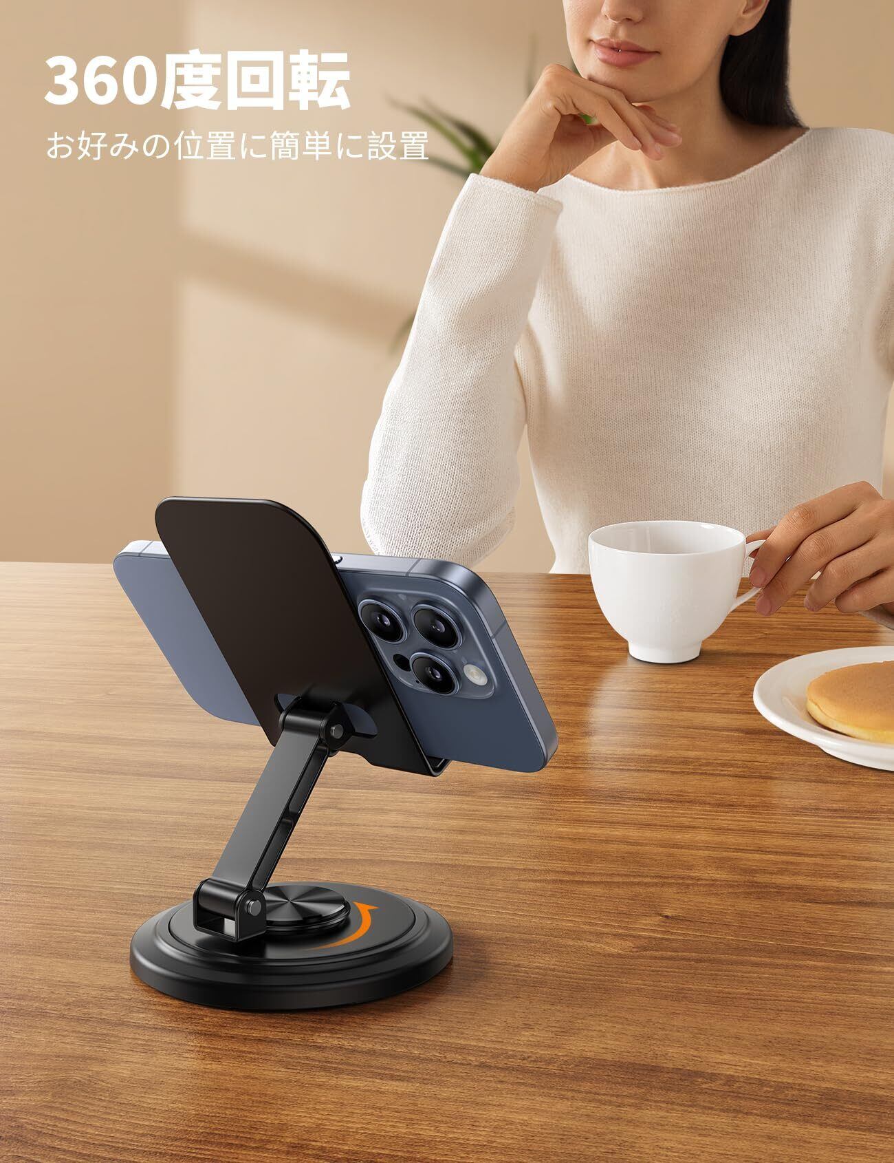 軽量 折り畳み スマホスタンド Lamicall : ABS アルミ 卓上 コンパクト 角度 回転 携帯 置き アイホン 立て 縦 横 すまほ 台 折りたたみ スマホ 机 デスク 滑り止め スマフォ iPhone 17e 17 Air 16e 16 15 14 plus pro max 13 mini se Huawei Xperia android に対応 黒