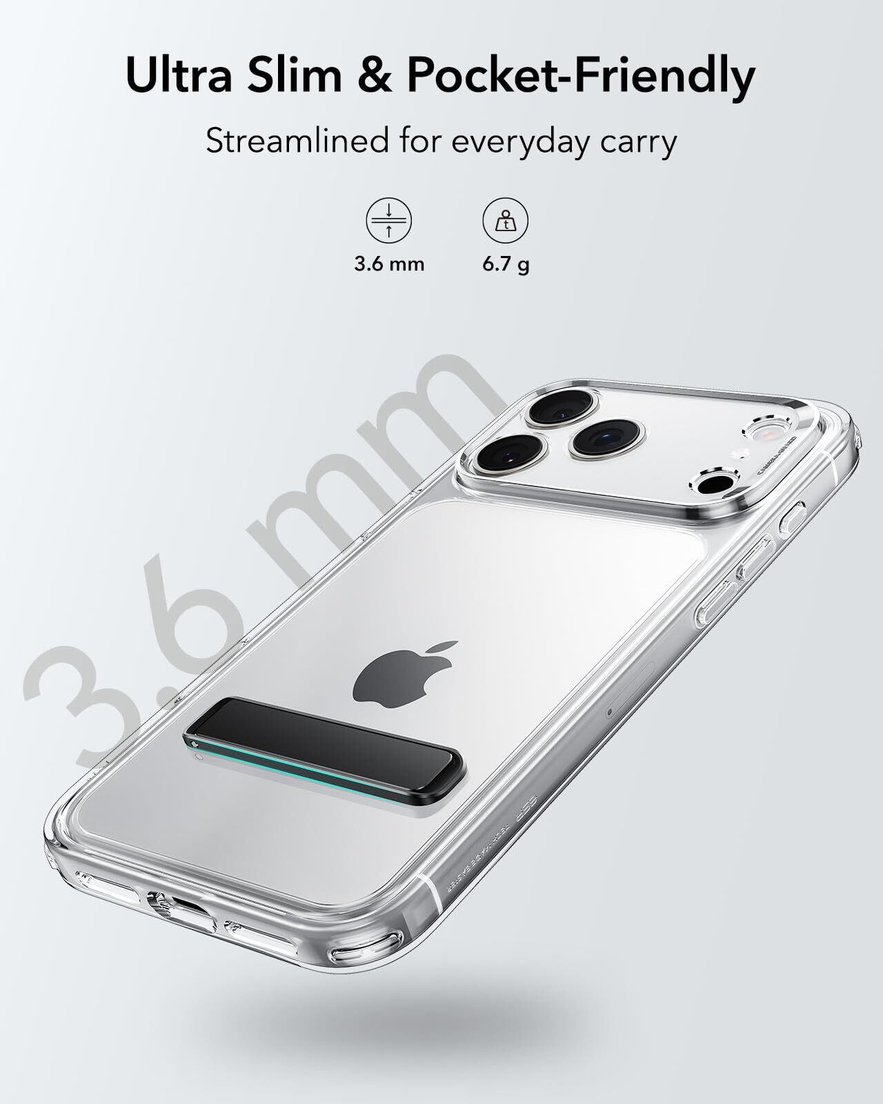 【スリム & 軽量】商品の重量: 6.68g、厚さ: 0.4cm。かさばることなく、便利なスタンド機能をお楽しみいただけます。