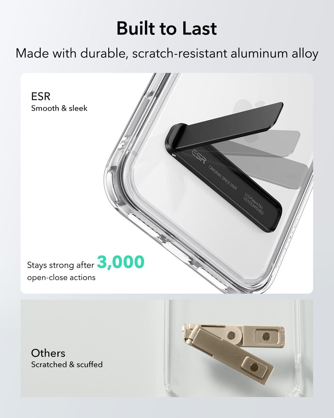 ESR スマホ キックスタンド メタル 縦置き 横置き対応 角度調節可能 iPhone 17e Air 17 16e 16 15 14 13 12、Google Pixel 10、Samsung、Android対応 - ブラック