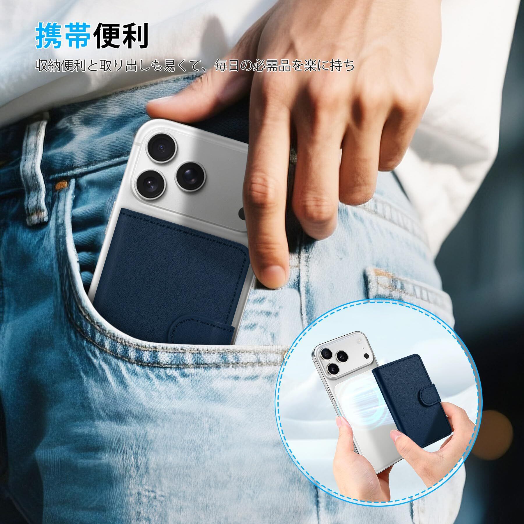 SHIELDON スマホカードケース 本革レザー 6枚カード収納 磁力吸着 磁力ケースとiPhone17/16/15/14/13/12/Air/Plus/Pro/Pro Max シリーズ対応 ネイビーブルー