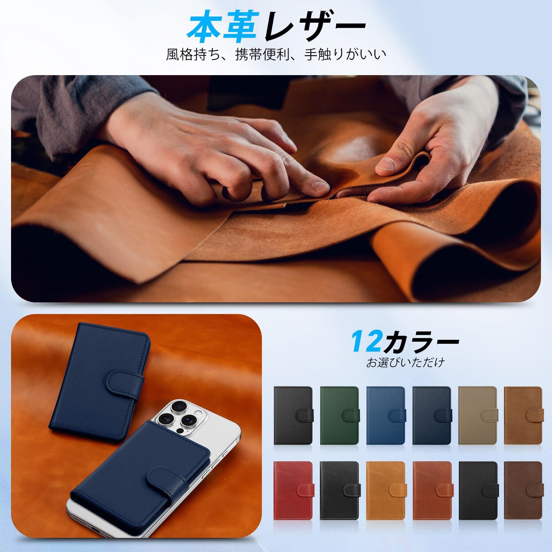 【マグネット型・強力磁力でしっかりと吸着】マグネット型の吸着カードケースで、強力な内蔵マグネットにより、iPhone 16/15/14/13/12シリーズをしっかりと保持します。軽量設計により、スマートフォンの背面にシームレスに接続でき、ポケットから取り出す際にも安定性を保ち、落下の心配がありません。マグネットの特性により、本体やカードポケットに残留する接着剤のリスクも無く、安心してご使用いただけます。また、この吸着カードケースは、の本革磁力ケースおよび2 in 1分離可手帳型の背面カバーにも対応しており、多様な使用シーンでの利便性を提供します。