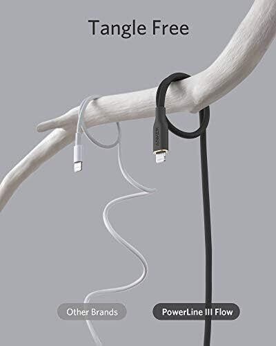 Anker PowerLine lll Flow USB-C & ライトニング ケーブル MFi認証 Anker絡まないケーブル USB PD対応 シリコン素材採用 iPhone 14 / 14 Plus / 14 Pro / 14 Pro Max / 13 各種対応 (1.8m ミッドナイトブラック)