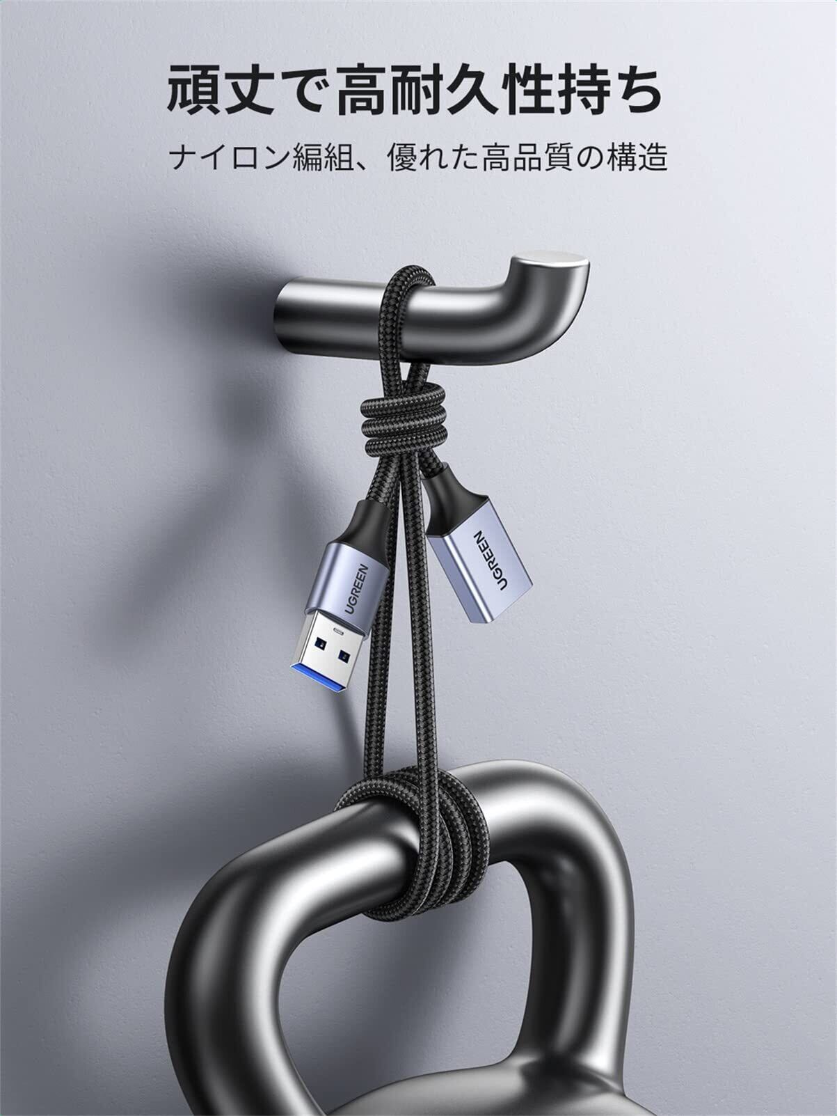 UGREEN USB 延長ケーブル USB3.0 5Gbps 高速データ転送 A-Aタイプ オスメス USB延長コード ナイロン編み製 取り回しやすい 0.5M 適格請求書発行可