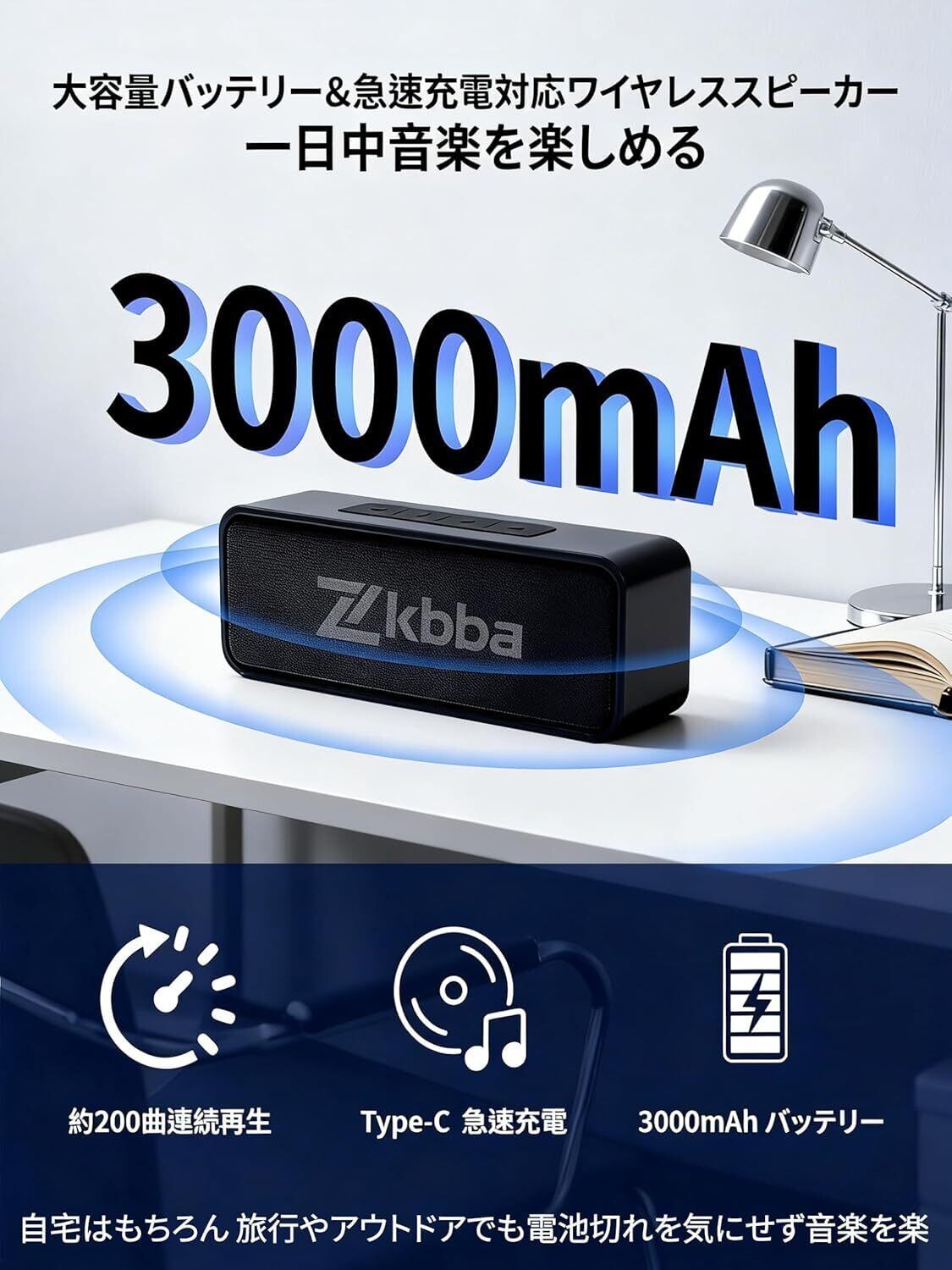 【長時間再生を前提に設計されたバッテリーで生活リズムに合わせやすい】内蔵バッテリーは、日中の作業用BGMから夜のリラックスタイムまでを想定して設計されており、こまめな充電を意識せずに使用できます。自宅での仕事や家事の合間、休日に音楽を流し続けたいときでも、途中で電源を気にすることが少なくなります。さらに、外出時に持ち出した場合でも、カフェでの作業や短時間の外遊びなど、限られた時間を音楽とともに快適に過ごせる点が特徴です。ポータブルスピーカーとして、屋内外を問わず安定した使用感を保てることが、日常使いでの満足感につながります。