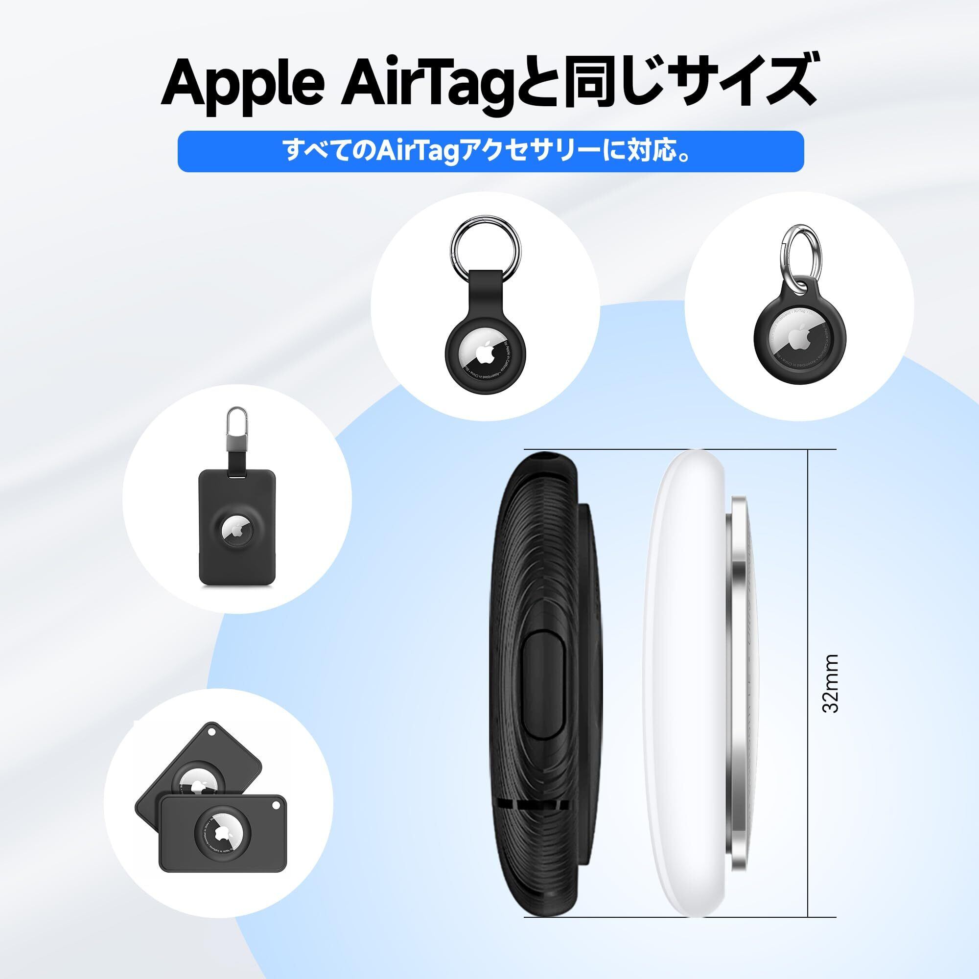 【コンパクト&軽量設計】本体サイズは32×32×8mm、重さわずか7g。AirTagと同じサイズで、市販のAirTagアクセサリーとも互換性があり、さまざまな用途に対応。(パッケージにキーリングが含まれています。)