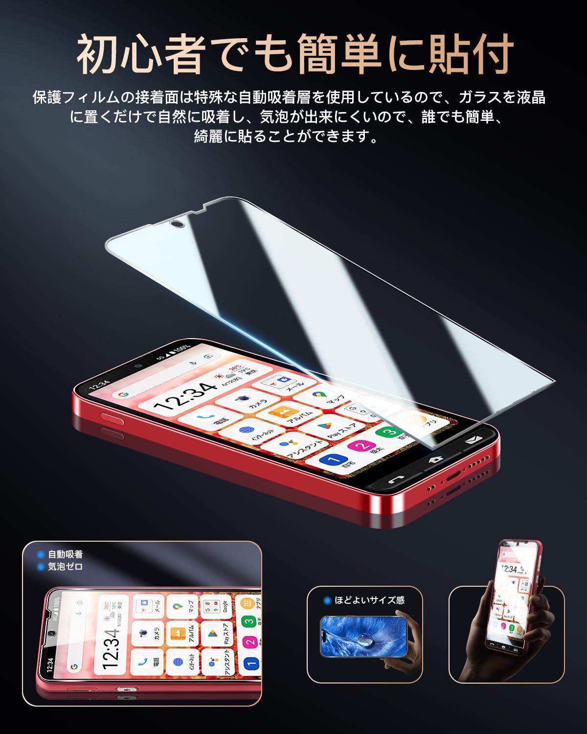 【指紋、油、水防止】ガラスフィルムの表面特殊な疎油処理されているため、画面感度に影響しなくて、簡単にタッチすることができ、指触りが抜群です。指紋や油分·水分の汚れが付きにくい、汗や皮脂、化粧品等が画面についてしまってもさっとひと拭きするだけです。