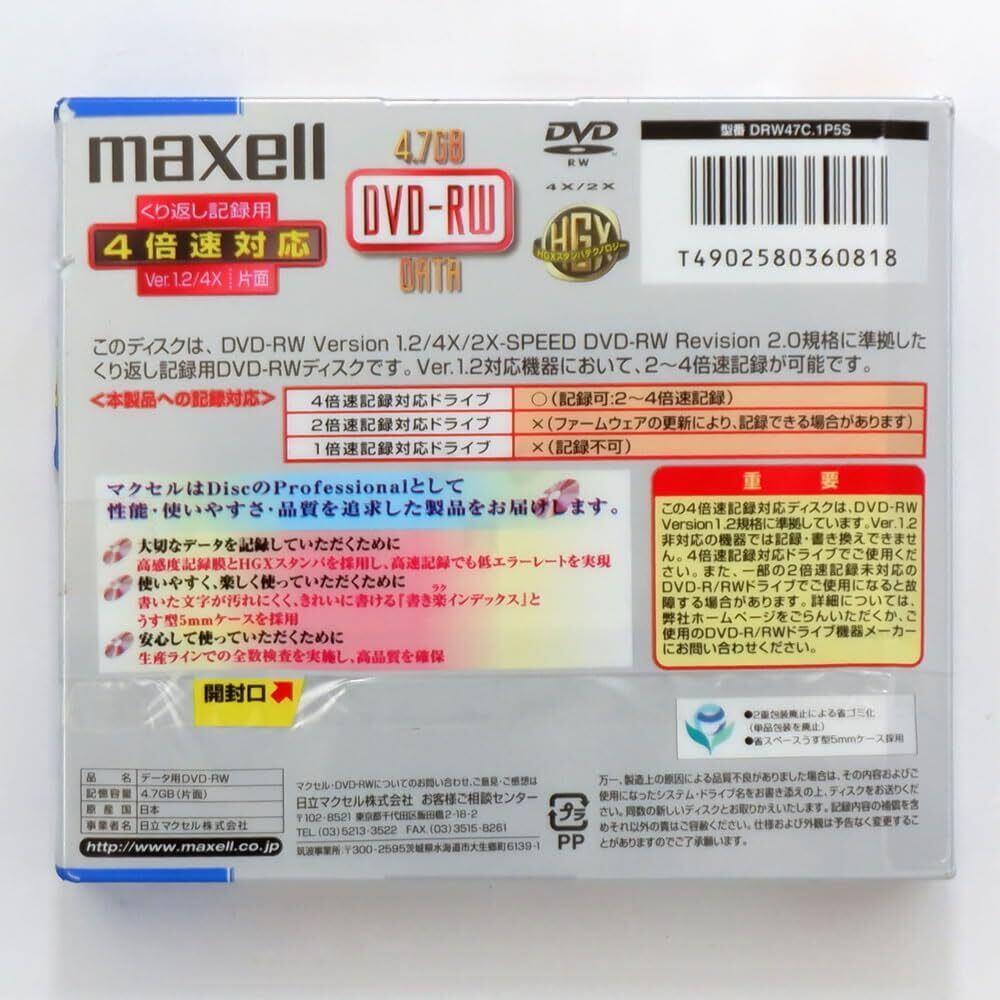 maxell データ用DVD-RW.4倍速.記憶容量4.7GB.5枚パック1枚づつプラケース入 DRW47C.1P5S