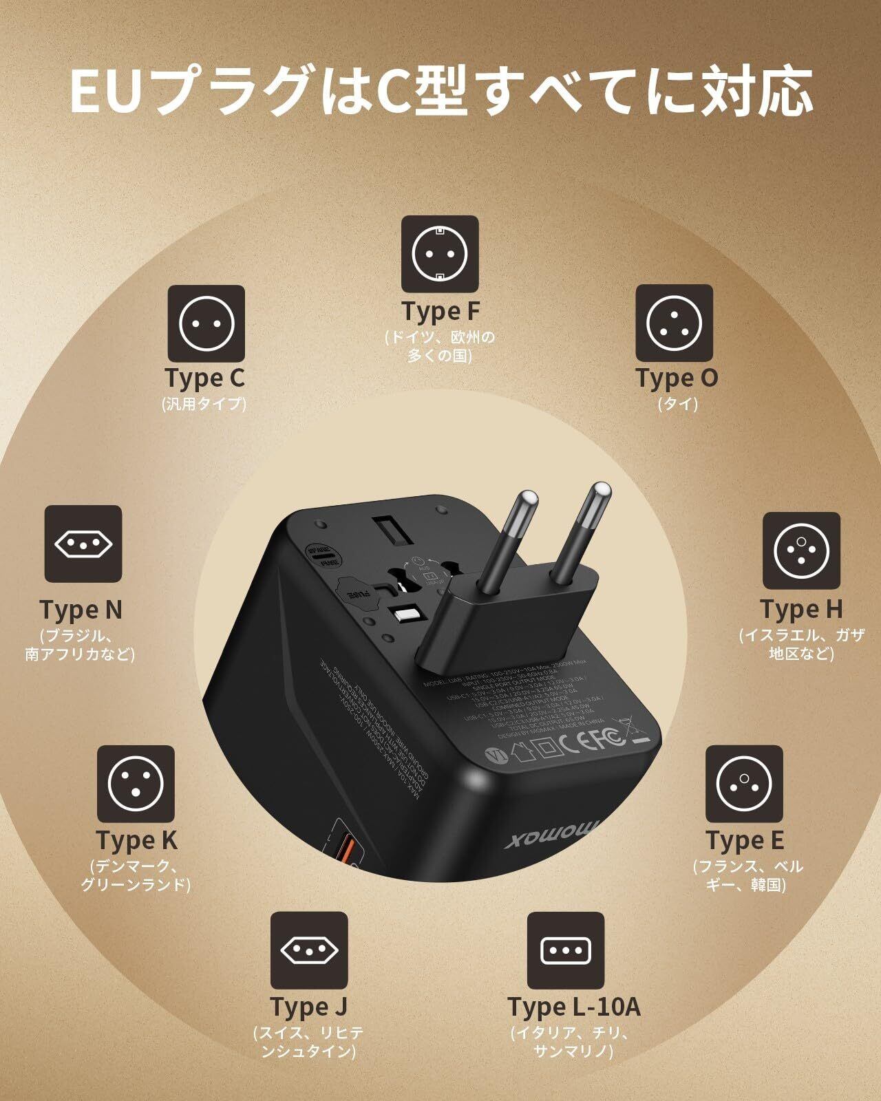 MOMAX 変換プラグ PD 70W GaN 海外用 6台同時充電 3*USB-C PD & 2*USB-A QC &1*ACコンセント 海外コンセント C/BF/O/Aタイプ マルチ変換プラグ 全世界対応 ヨーロッパ/韓国/イギリス/アメリカ/オーストラリアの国に対応