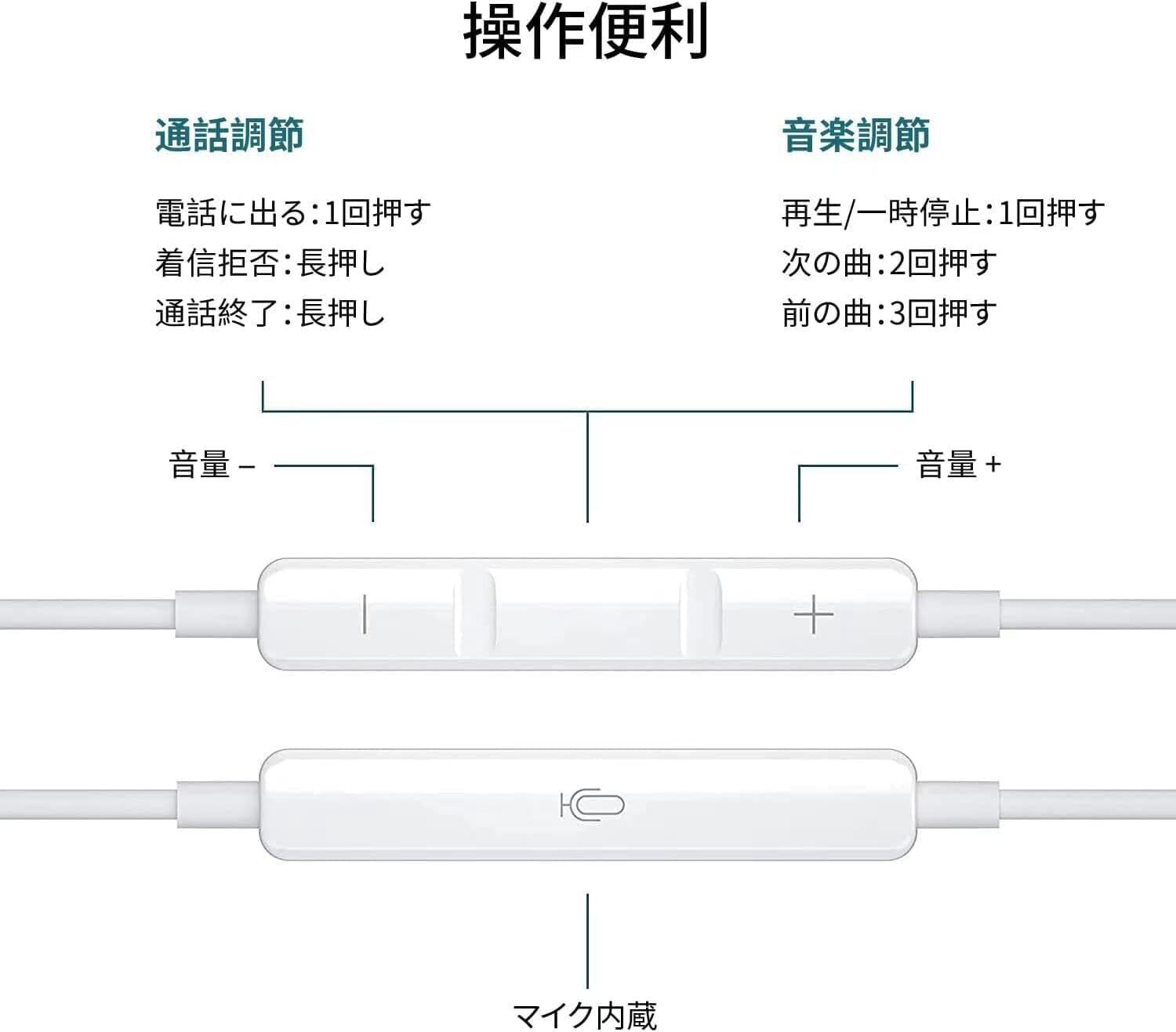 iPhone イヤホンの音量コントローラ搭載で操作便利。このiPhoneイヤホンに音量調節、再生/停止など全ての操作できます。内蔵マイクでゲーム中にハンズフリー通話とリアルタイムの会話が可能になります。