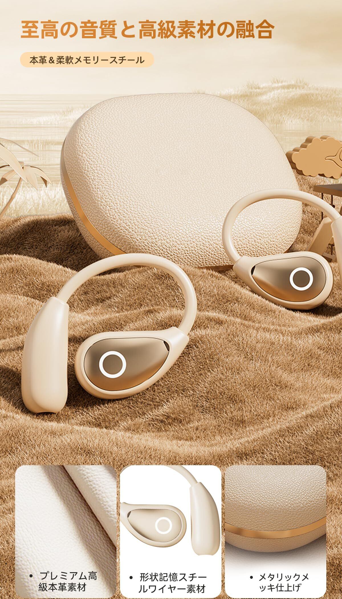 ワイヤレスイヤホン業界トップ Hi-Fi音質 bluetooth5.49 瞬時接続 自動ペアリング 最大100時間再生 Type-C急速充電 オープンイヤー 空気伝導 耳塞がず快適 7g超軽量 マイク付き 音漏れ抑制 LED ディスプレイ残量表示 タッチ操作 IPX7防水(アイボリー)