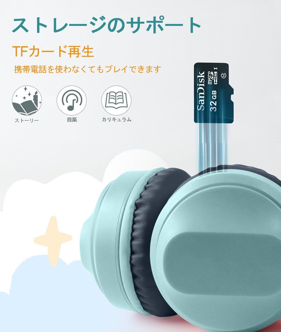 【子供用イヤホン】人間工学に基づいて、伸縮式アーム+サスペンションイヤーマフを採用し、多次元のフィット感を実現し、自由に調整できます。6000回以上の引張損傷テスト、耐久性、高忠実度の音質、さまざまなデバイスと互換性があり、3.5mmオーディオケーブル伝送をサポートし、ボタン1つでFMモードを切り替えることができます。外部TFカードの再生をサポートし、物語、レッスン、詩などの子供の趣味に応じて対応するコンテンツを保存できます。