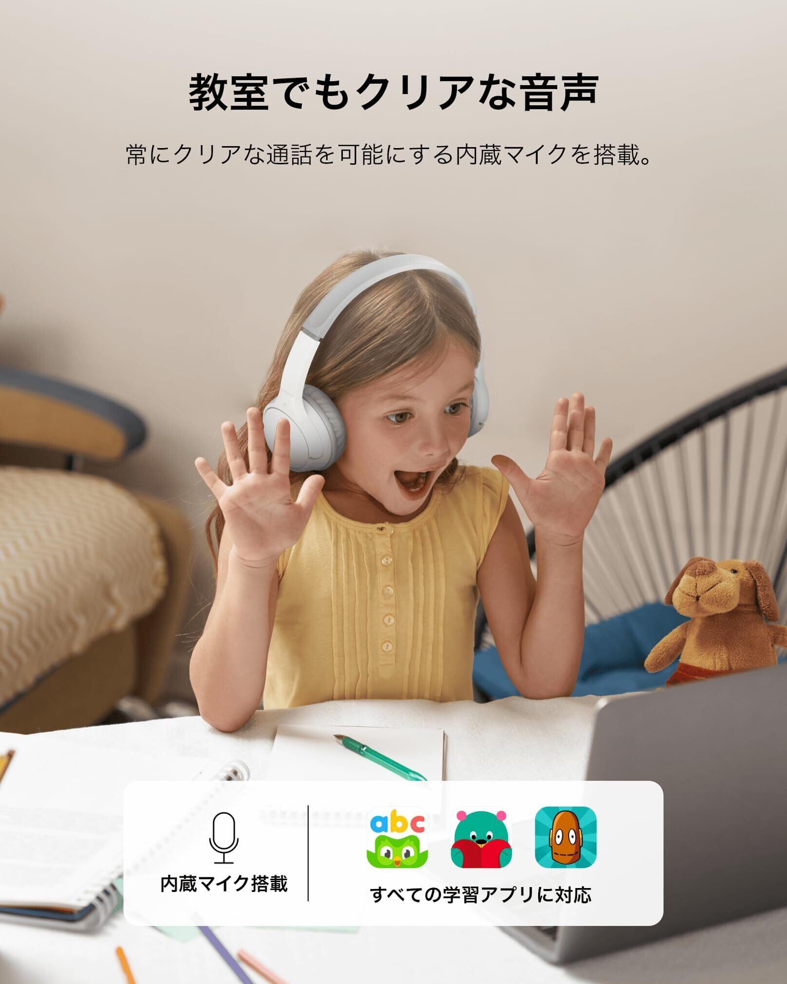 【ゲームしながらボイスチャットもできる】高音質マイクを搭載しているので通話も快適。FPSゲームなどでお友達とのボイスチャットをする際のゲーミングヘッドセットとしても使用可能。オンライン学習にも最適で、iPadと Fire Tabletなどの多くのデバイスで使用できるので、お子様の学習用サイトやコンテンツでの音楽視聴・通話で快適にお使いいただけます。余分なノイズを除去して、お子様の小さな声でもクリアな通話を実現します。