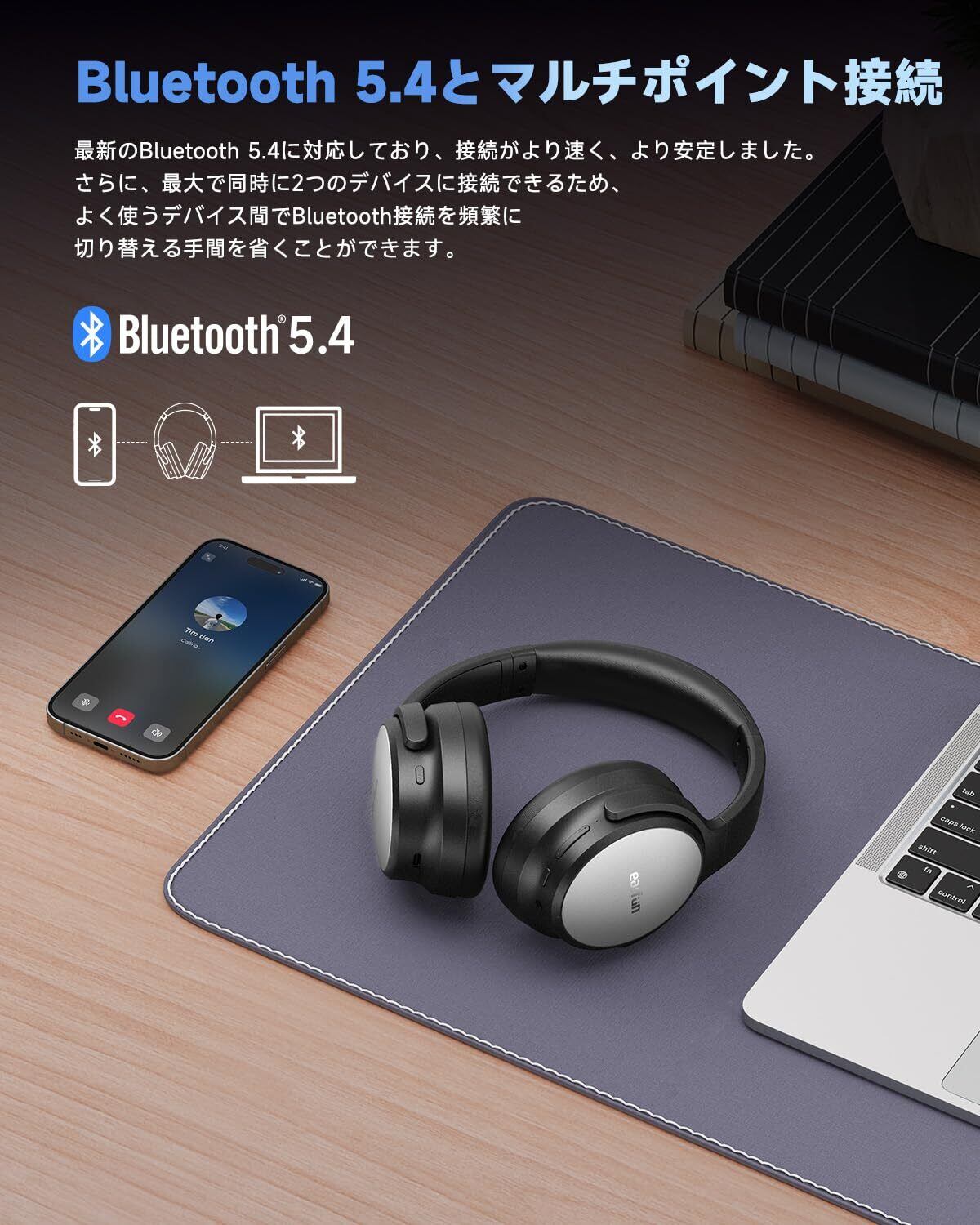【Bluetooth 5.4&マルチポイント接続】 最新のBluetooth 5.4に対応し、接続性と安定性がさらに向上しました。最大2台のデバイスに同時接続できるため、頻繁にデバイス間を切り替える手間なくご利用いただけます。