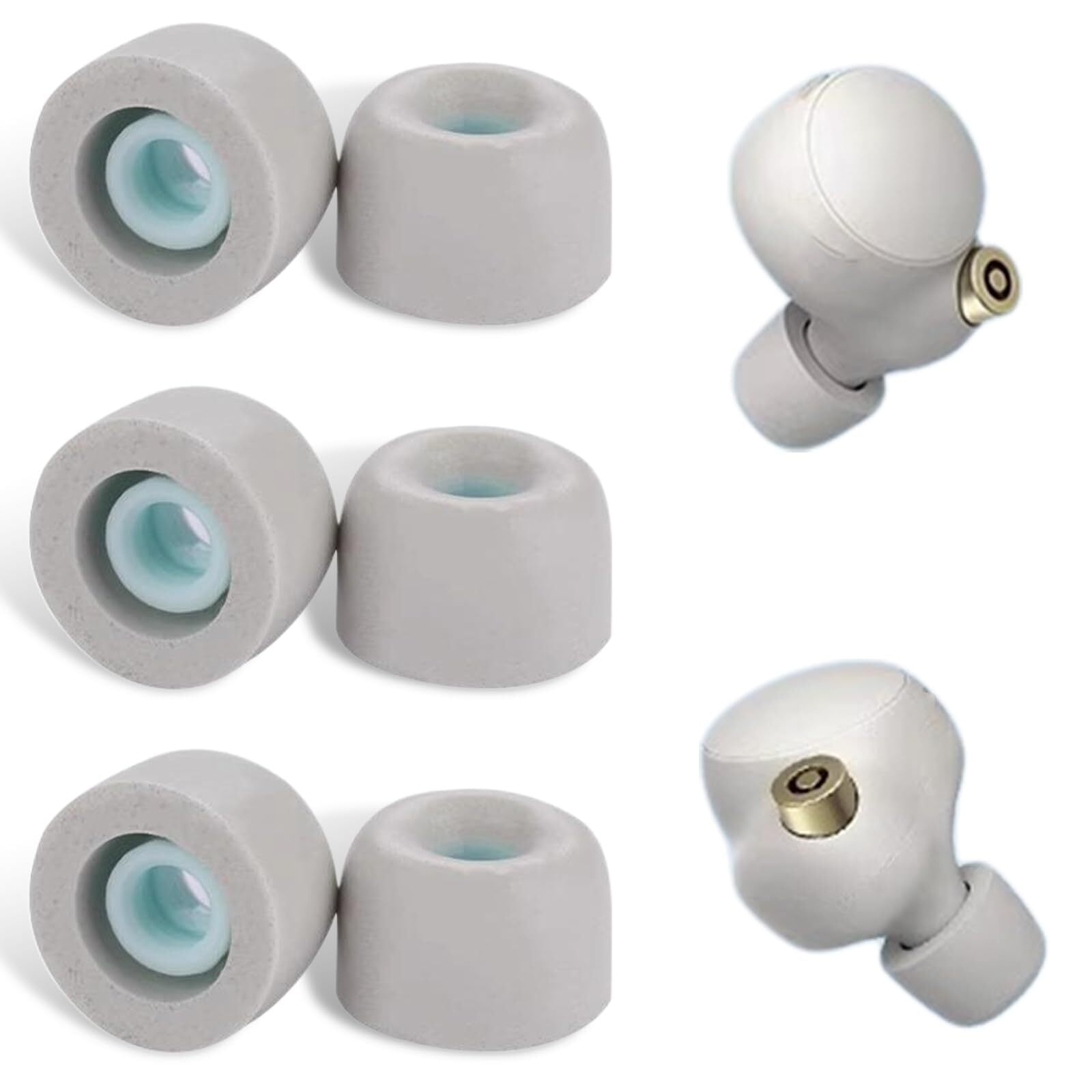 低反発イヤーピース イヤーチップ スポンジ耳栓カバー ヘッドフォン耳栓 WF-1000XM4/1000XM5適用 ウレタン製 低反発イヤホンカバー イズ低減 遅いリバウンド 音質を向上させる 快適な装着感 脱落防止 ヘッドフォン耳栓交換部品 (Mサイズ 3ペア グレー)