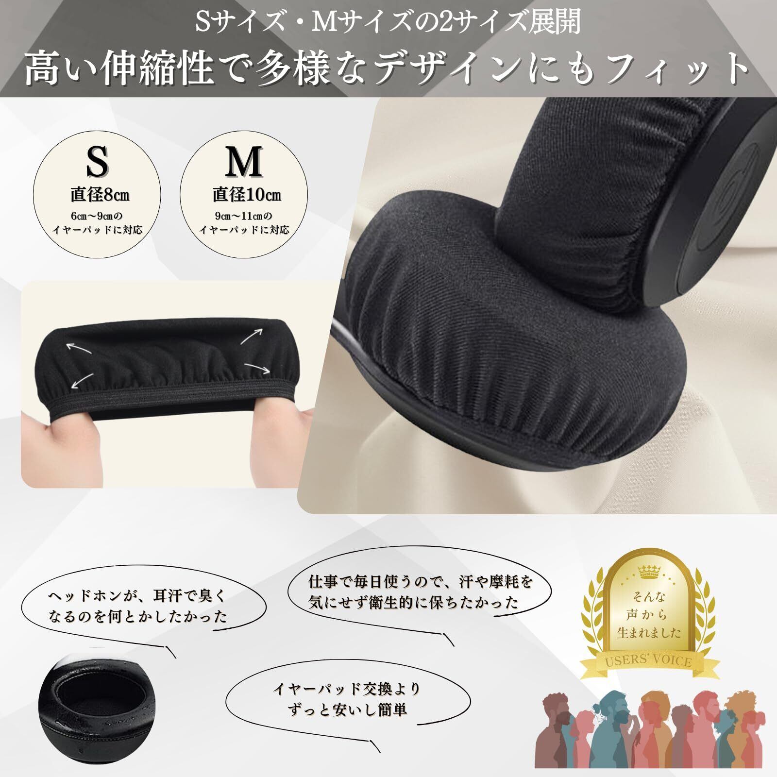 【カラー】 ブラック ・ブルー 【サイズ】 Sサイズ 6cm〜9cmのイヤーパッドに対応 Mサイズ 9cm〜11cmのイヤーパッドに対応