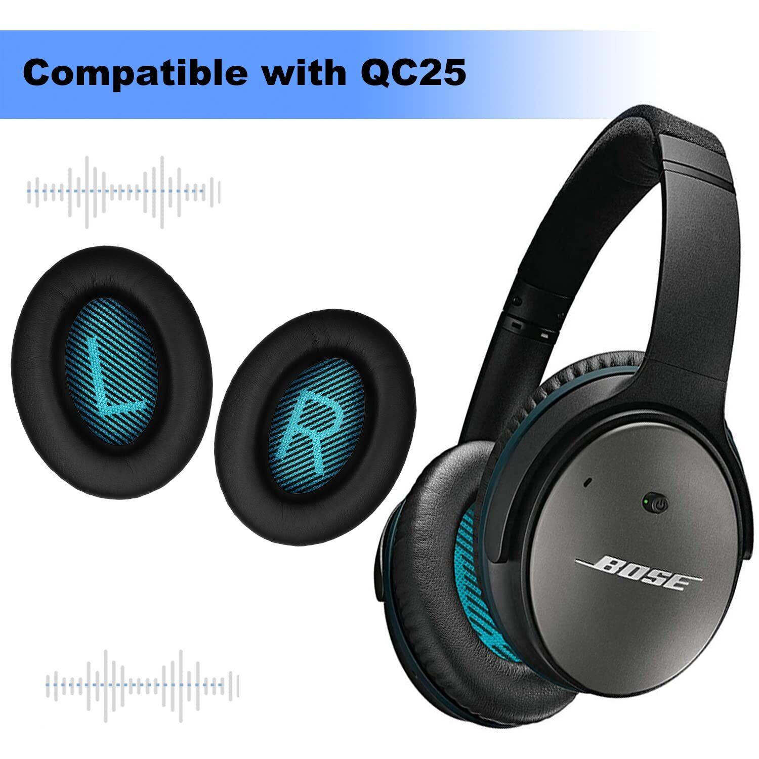 Bose QuietComfort QC15 / QC25 / QC35 / QC2 / AE2用のプロフェッショナル交換用イヤーパッド、プレミアムヘッドフォンイヤパッドクッション、より柔らかいレザーとメモリーフォーム、ブラック