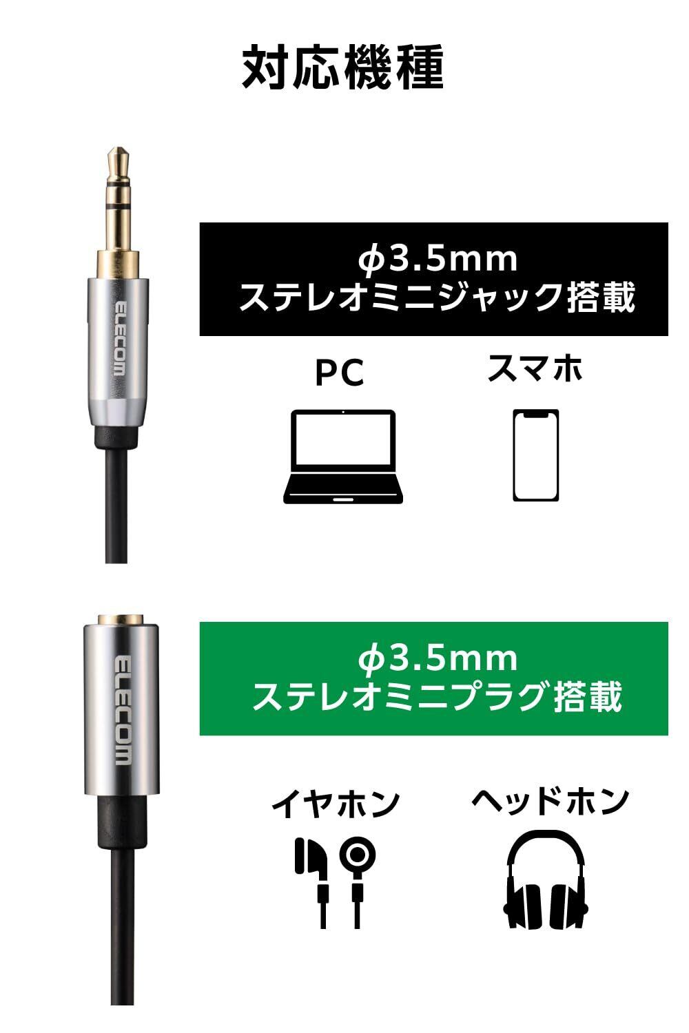 エレコム オーディオケーブル 延長 イヤホン 3極 3.5mm ステレオミニプラグ 延長コード 3.5m AUX ヘッドホン/スマホ/PC/TV ブラック ECDH-35E35BK