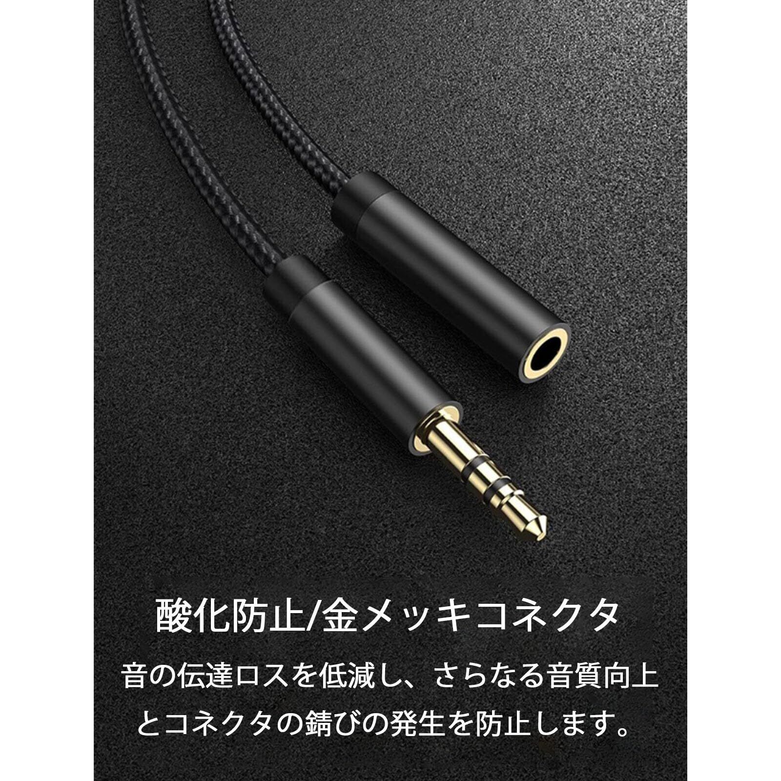 3.5mm オーディオ延長ケーブル 3極/イヤホン AUX 延長ケーブル ヘッドホン オス-メス 多重シールド 24K金メッキコネクタ スマホ/PC/TV/モニター/イヤホン/スピーカーに対応 1M