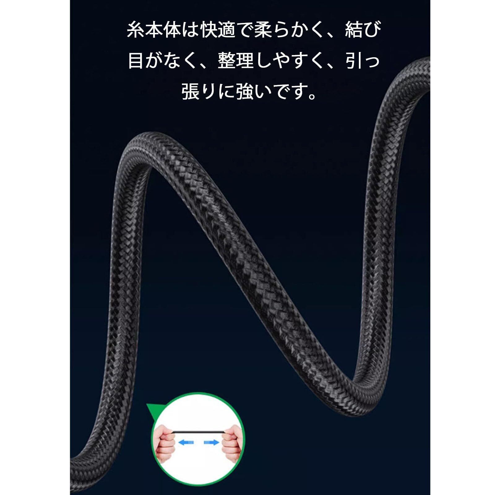 【高品質】織り被覆により、コードがしなやかで絡まりにくく取り回しやすいです。適度に太く断線にくいデザインです。