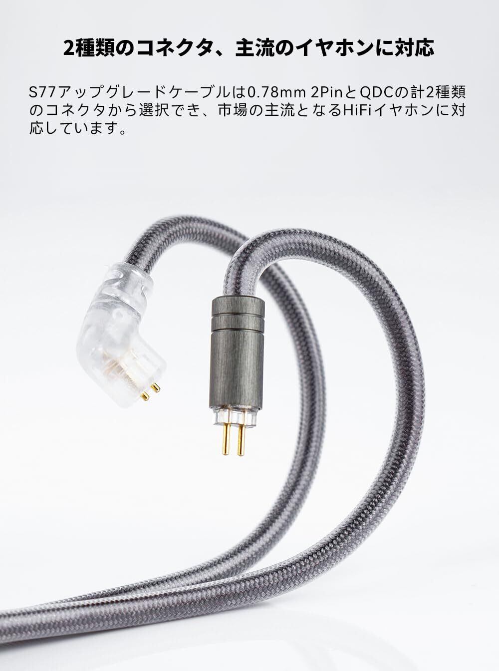 【中高域の密度を高め、豊かな音のディテール】S77 アップグレードケーブルは全体的な音に厚みがあり、音像定位がクリアで繊細です、中高域のエネルギー感が強化され、密度も良好で、音の切れ味が鋭くなっています、低域の雰囲気も優れており、球形の音場が形成され、包み込むような感じが強いです、特に木製弦楽器や木製管楽器の音が非常に美しく、クラシックの小編成楽曲に適しています