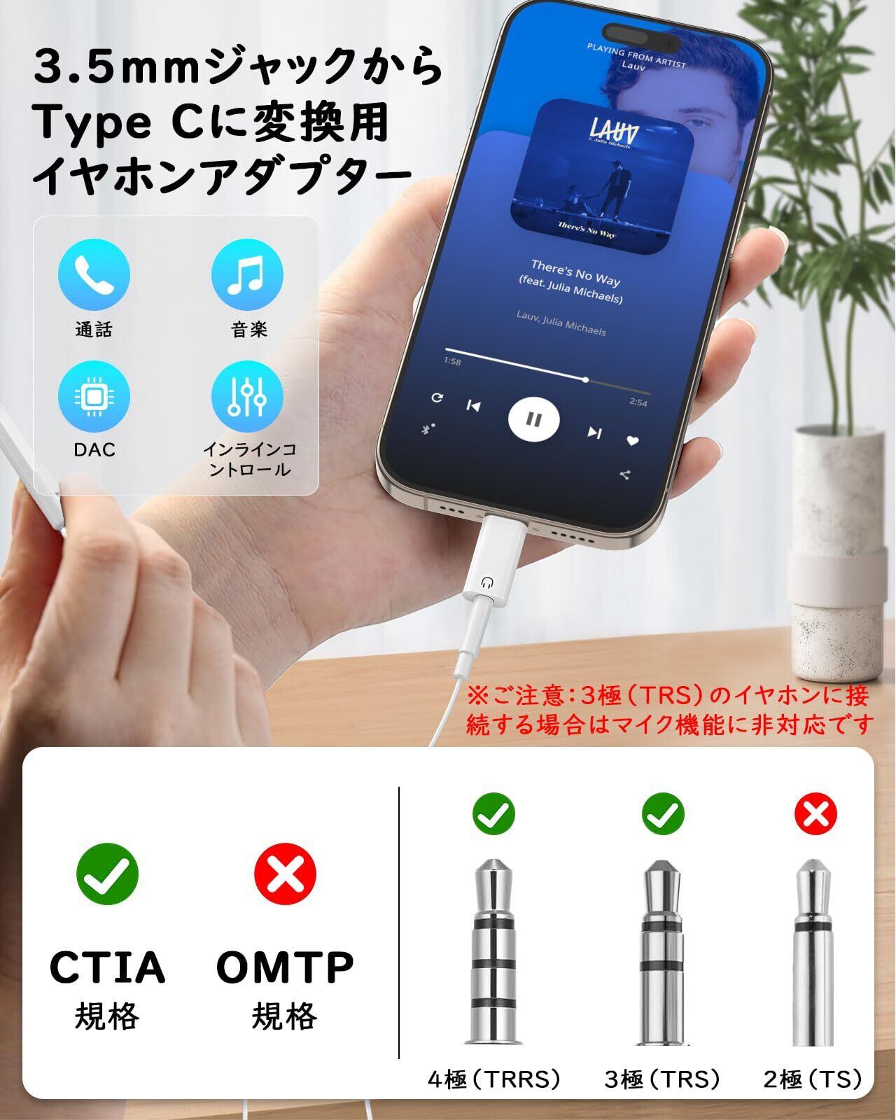 MoKo USB C to 3.5mm イヤホンジャック 変換アダプター 3.5mm 4極 3極 Type C イヤホン/ヘッドセット変換アダプタ DACチップ搭載 音楽/音量調節/通話 インラインコントロール対応 iPhone17e/Air/17/17Pro/16/15/iPadPro/Air/MacなどUSB-Cコネクタの端末に対応 White