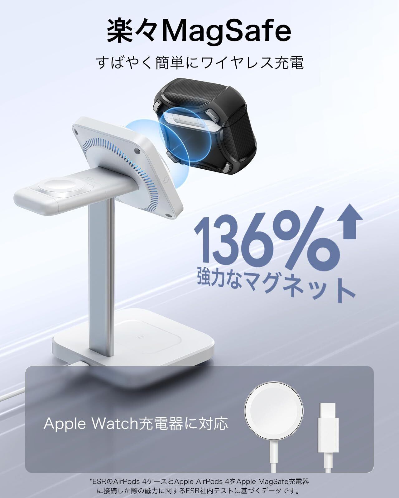 ESR AirPods4 ケース AirPods 第4世代 ケース(2024) (USB-C) 対応 MagSafe 対応 強力落下防止 マグネット蓋 Cyberシリーズ ブラック
