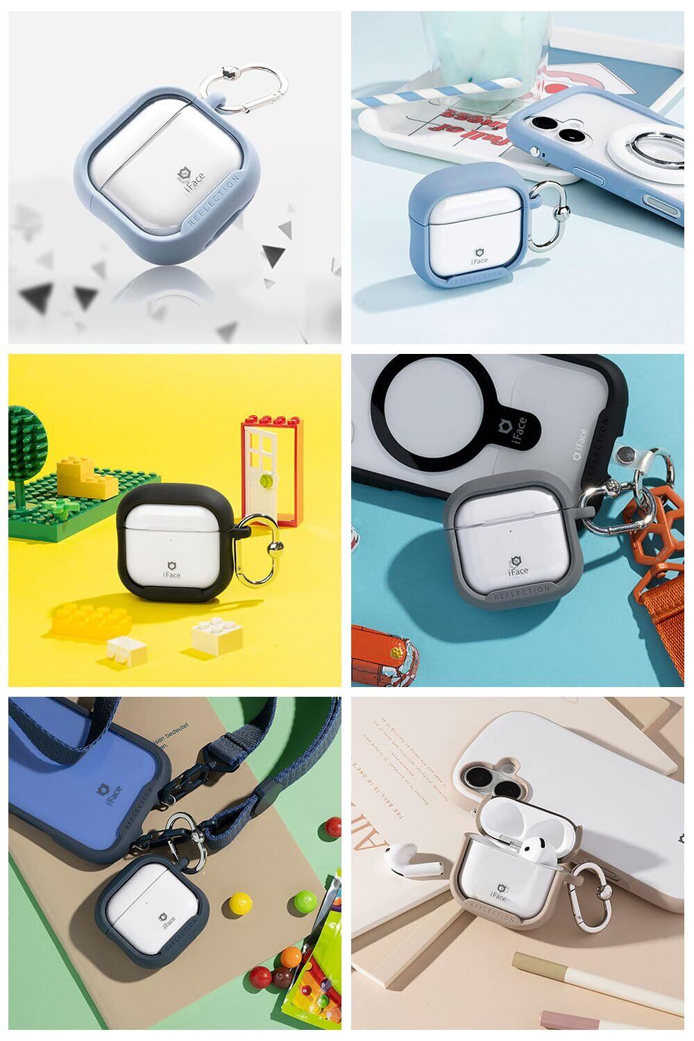 iFace Reflectionをギュッと小さくしたようなAirPodsケース。人気シリーズのiFace ReflectionからAirPods(第4世代)用ケースが登場しました。Reflectionスマホケースをギュッと小さくしたようなデザイン。カラフルなふちとクリアの表面で、ケースを着けた状態でもAirPods本体が見えるのがおしゃれ。Reflectionスマホケースやタブレットケース、Hang andショルダーストラップとカラーコーデを楽しもう。