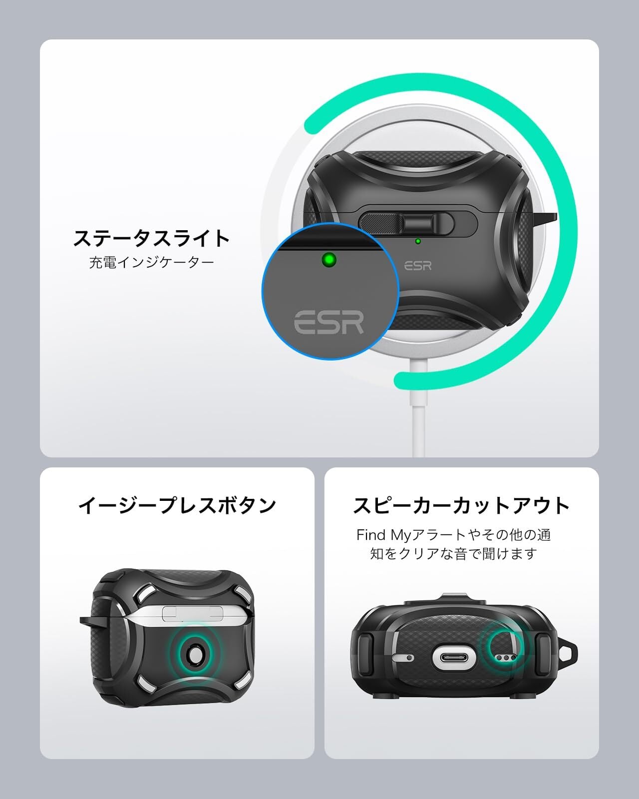 ESR AirPods Pro2 ケース MagSafe対応 AirPods Pro 第2世代/第1世代 (2023/2022/2019)共通 (USB-C/Lightningケーブル対応)、強力な落下防止、磁気付き蓋、Cyberシリーズ、チタニウム色