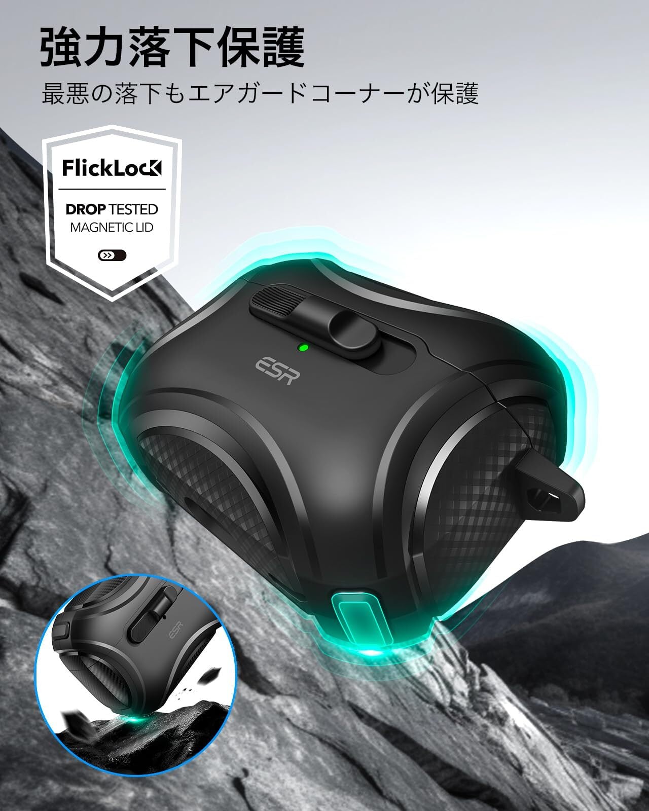 【落下防止リッドロック】リッドの上部と底部にある700gの保持力を持つ強力なマグネットと内部のラッチにより、AirPodsを内部にしっかりロックし、落としてもイヤホンが飛び出すことはありません。