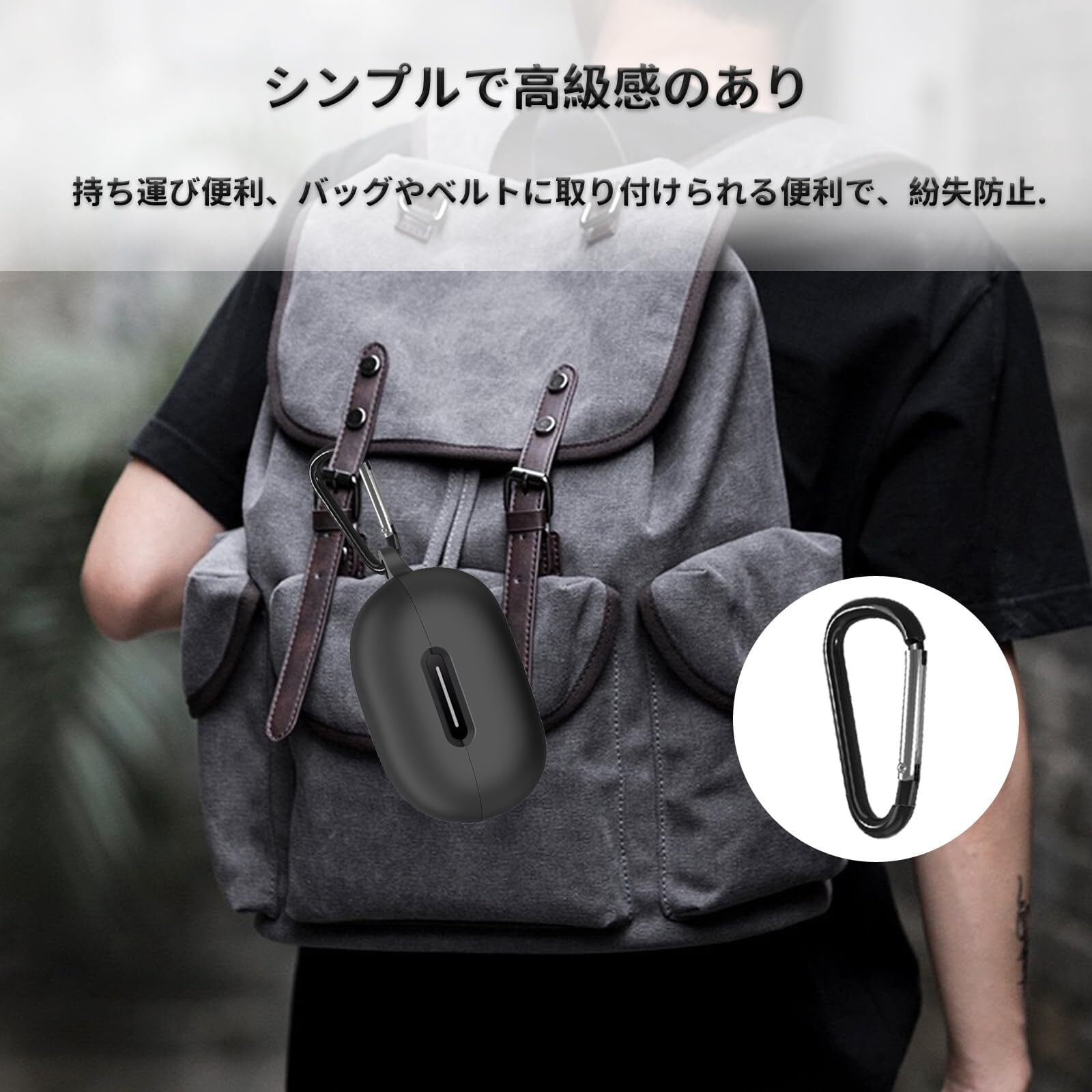 For Anker Soundcore P40i ケース P40i 保護カバー P40i ケース 柔らかい シリコン製 落下防止 キズ防止 耐衝撃 防塵 軽量 装着充電可能 カラビナ付き 紛失防止(ブラック)