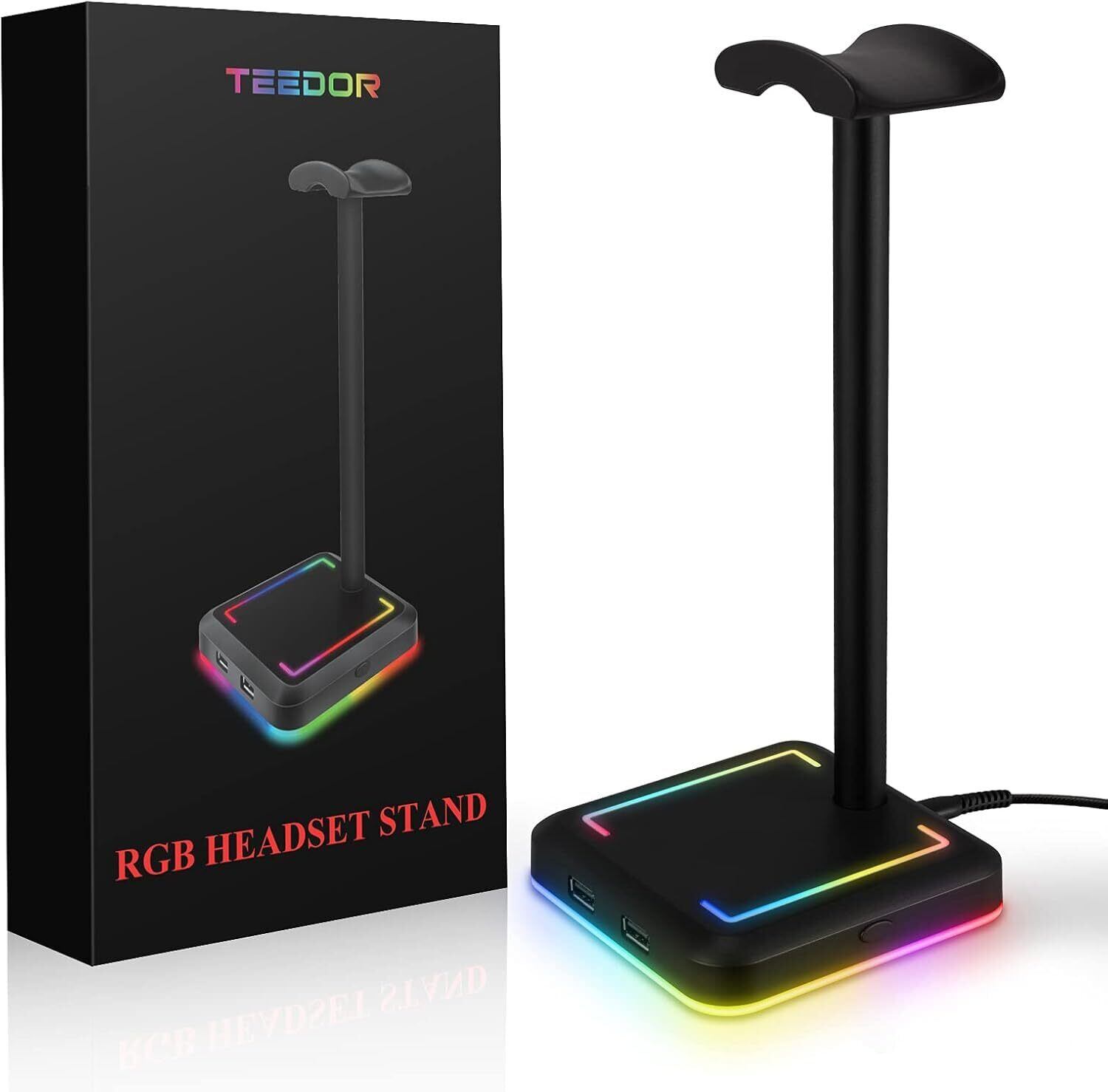ヘッドホンスタンド RGBカラー付き 充電可能 2つのUSB入力ポート付き ヘッドセットスタンド 組み立て 安定性 多機能 ヘッドホンハンガー