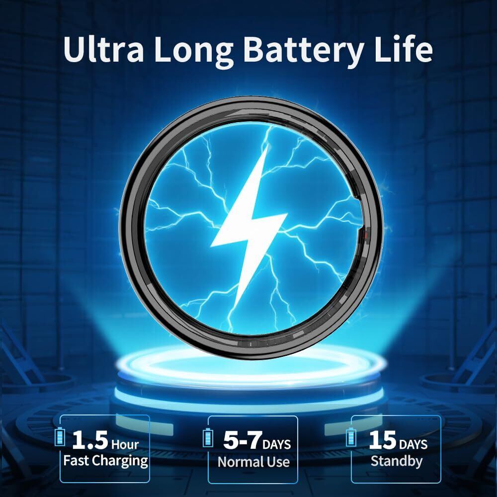 スマートリング | 睡眠トラッキング | フィットネスリング | スマートディスプレイ | ワイヤレス充電 | 5~7日間のバッテリー寿命 | 5気圧防水 | Android 5.1 & iOS 8.0対応 | ユニセックス (ブラック, 8)