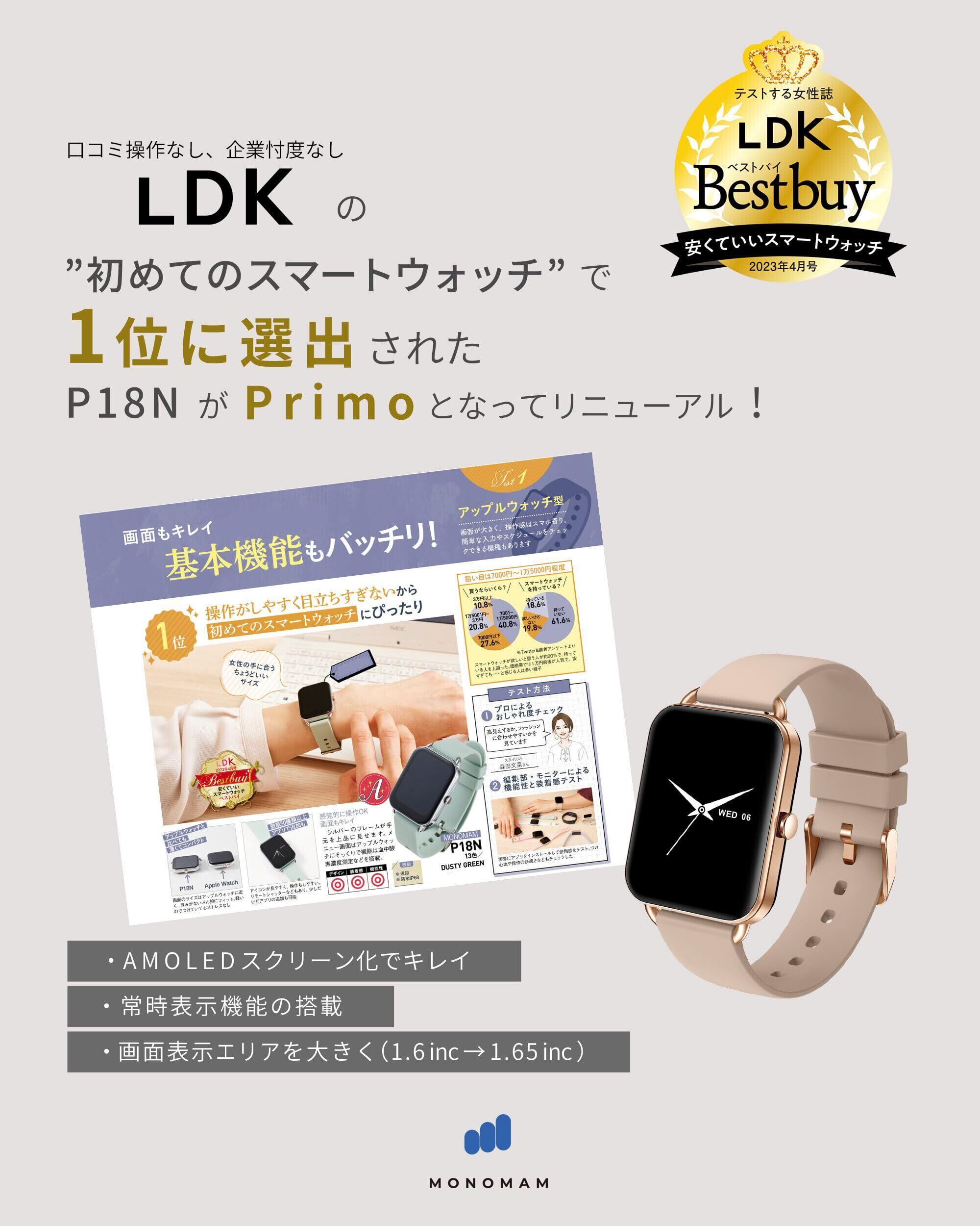 MONOMAM Primo スマートウォッチ レディース 小さめ iPhone対応 アンドロイド対応 AMOLED 常時表示 ベルト幅18mm メンズ 活動量計 Line 着信通知 (Soy Latte)