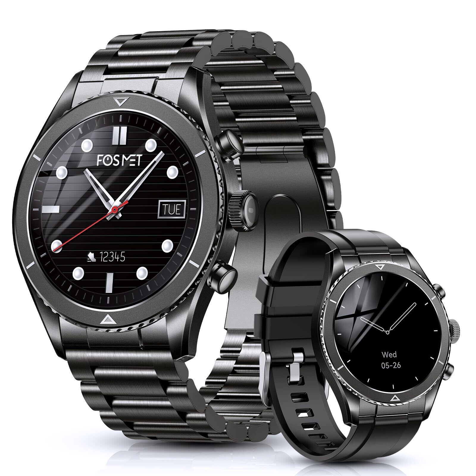 FOSMET スマートウォッチ R11.32インチサファイアガラス Bluetooth通話・メッセージ通知 最大14日連続使用 IP68防水 睡眠管理 100種スポーツモード カスタマイズ文字盤 GPS連携 4PDセンサー ベルド2本 iPhone&Android対応 TELEC認証済 ブラック