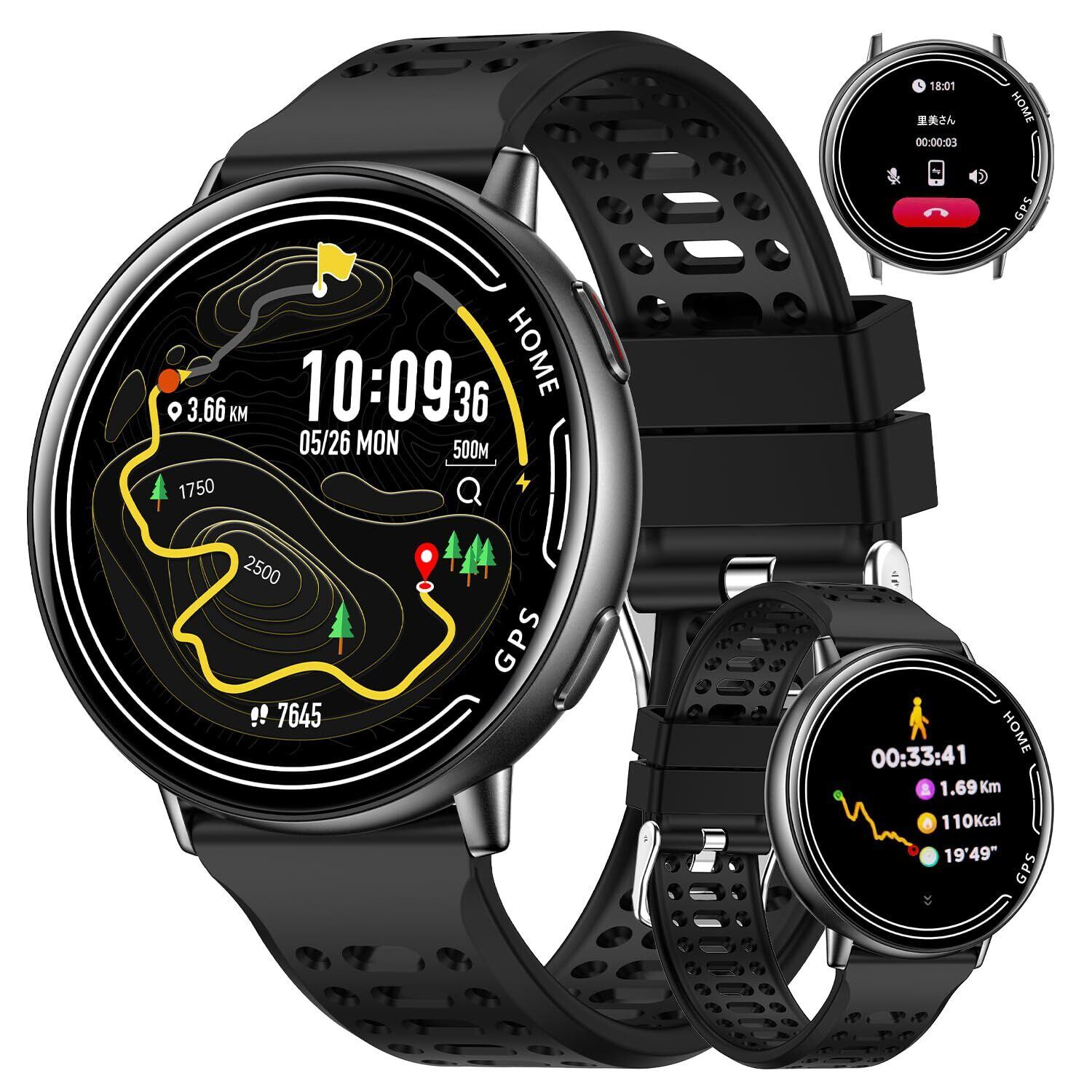 スマートウォッチ丸型 iPhone対応 アンドロイド対応 スポーツウォッチ Bluetooth5.3通話 1.39インチ大画面 腕時計 100+運動モード 文字盤DIY GPS運動軌跡記録 振動と着信音設定 IP68防水 Lineなど通知 Smart Watch 天気予報 音声アシスタント 歩数計 レディース メンズ 日本語説明書(ブラック)