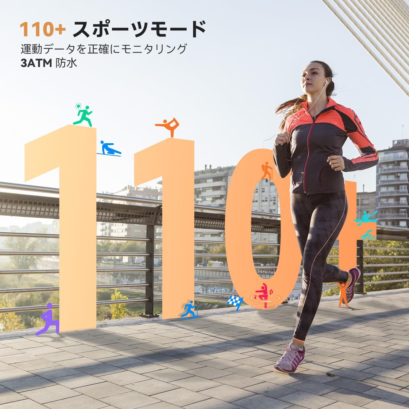 ️ 【24時間カロリー管理 & 100+スポーツモード】 BPM、Sp02、ストレス、睡眠など、身体データを24時間計測できます。自身の状態をより深く把握できます。また、100種類以上のスポーツモードを内蔵し、運動時の消費カロリー・歩数・距離・時間などを自動記録。IP68防水仕様で、汗や雨の日も安心です。