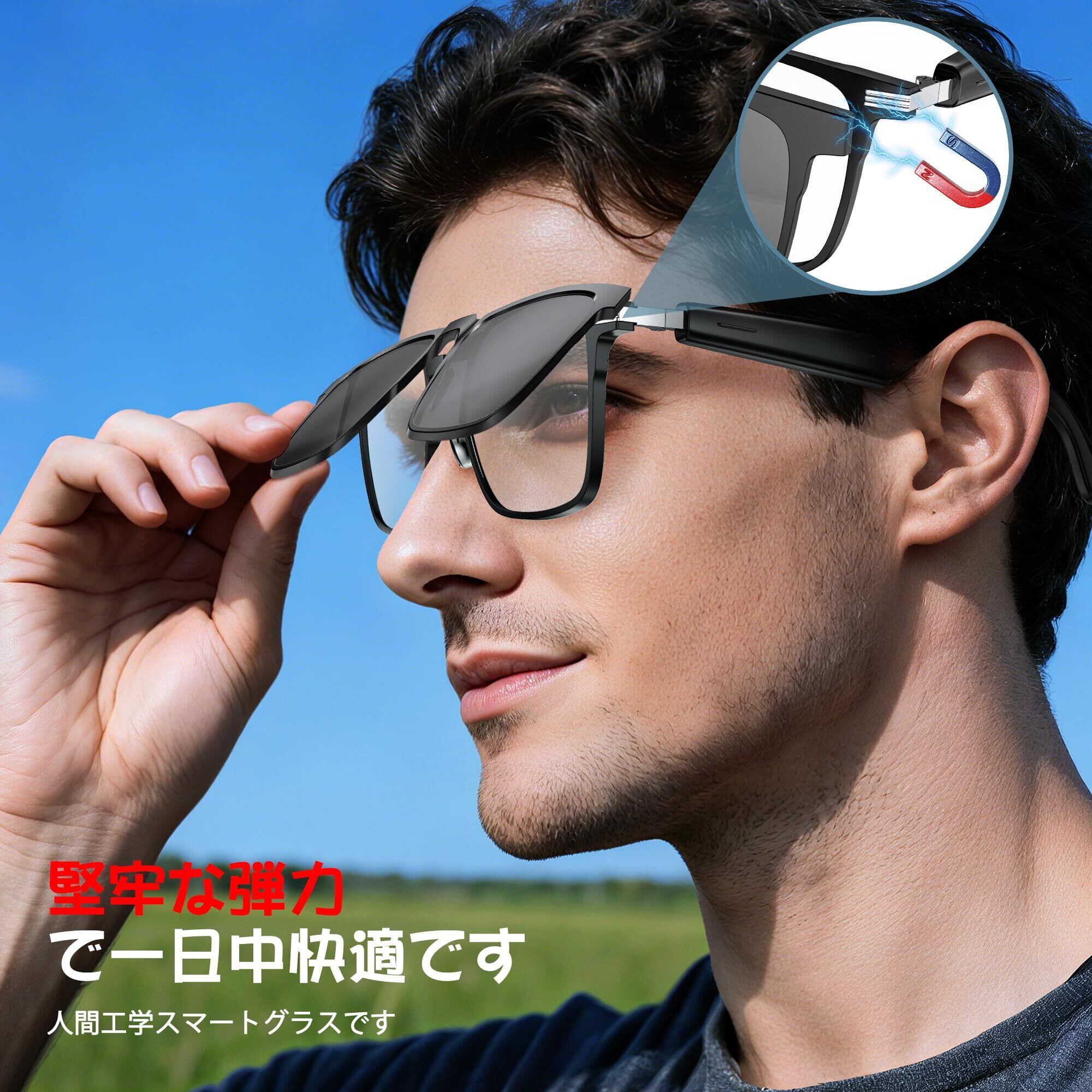 AIスマートグラス、スピーカー付き無線Bluetoothメガネの音声制御、リアルタイム144言語翻訳、男性女性のための青光ブロックメガネ、極化紫外線保護