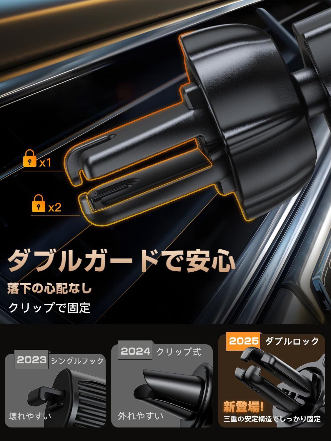 【2in1スマートフォンマウントカー】強力な吸盤/クリップ付きの2in1カーマウント。これにより、安全運転を損なうことなく、電話をあらゆる方向に配置できます。強力な吸盤は吸引力が強いだけでなく、耐熱性にも優れています。誤って汚れて吸引力が低下した場合は、水洗いして元の状態に戻します。いつでも取り外して、別の車や他の場所で使用できます。