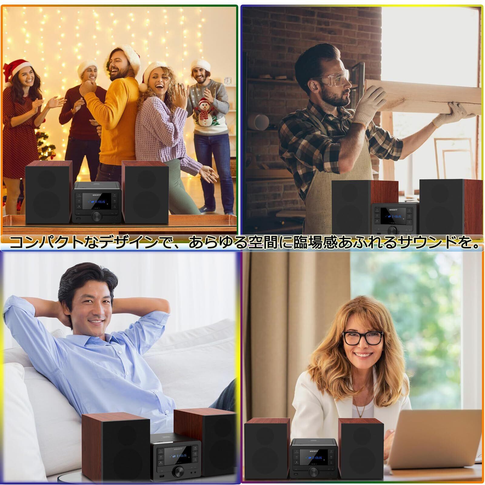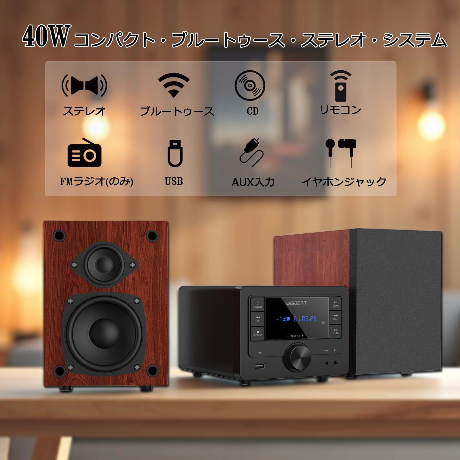 ミニコンポ 40W Bluetooth CDステレオシステム, ホームオーディオ, CD/MP3/USB/FM/AUX 入力, ブックシェルフスピーカー (クラシック)